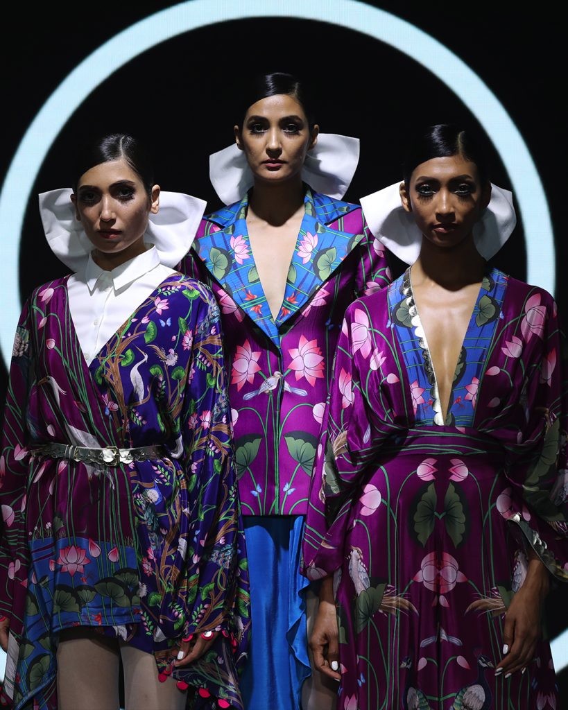 The lotus on their kimono-esque jackets an ode to devotional Pichhwai paintings of Rajasthan obliquely told us that we have to rise above our surroundings no matter how hard the times are or will be.
