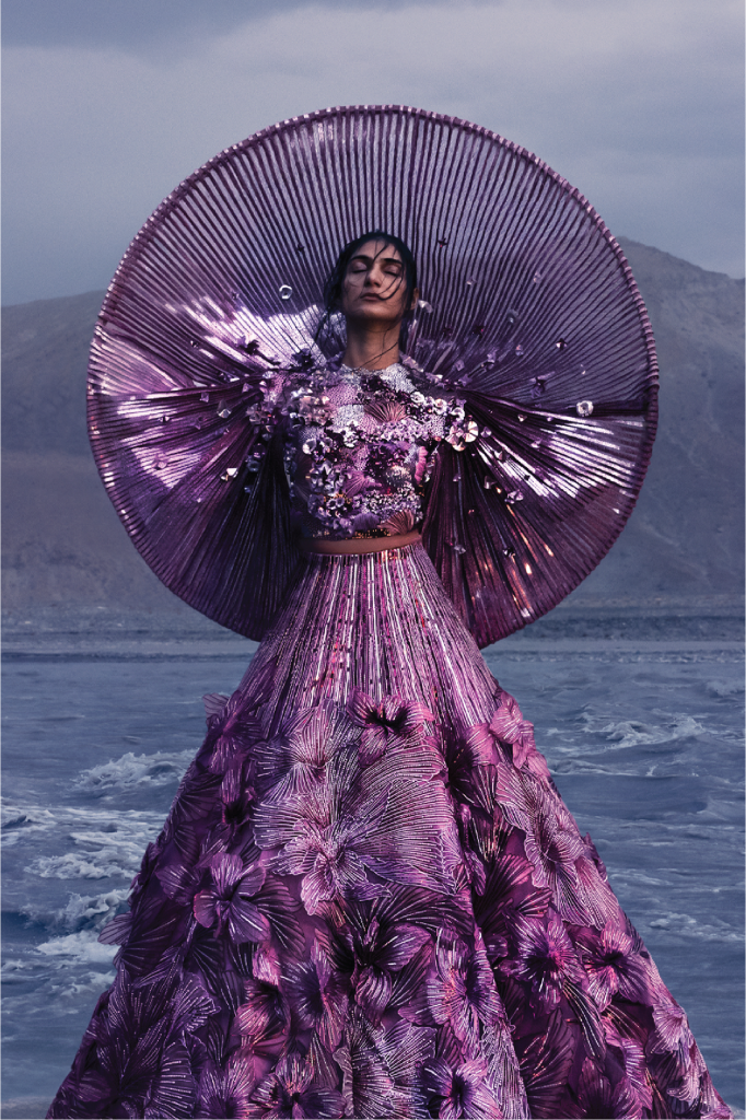 Add to this mix indigenous embroidery, with a sense of movement, like a gust of wind or a float in the water that has been executed using industrial materials. On the digital front, Amit has been launching mini campaigns with a purpose to engage with his clients, but even though you can sell couture online, personalisation is mandatory. It is followed by video calls and getting the perfect colour as a picture is not enough to make a decision. “Many of my clients still want the touch and feel which I encourage as it is a big day and you want to make the right choice,” he adds.