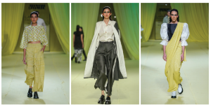 The collection was styled with pieces which were most loved by their legion of fans, so they dipped into the archives, restyled them, also teaching all the trend lovers a lesson in pure sustainability. This is also a season of change and reinvention; thus khadi was intermingled with tencel, the old meets the new, two different compositions blending effortlessly to create interesting textures. Technology can be a harbinger of change, different from the time I started on the Vishwakarma looms. The younger audience appreciates handlooms, but they need a more contemporary take on it, he adds.