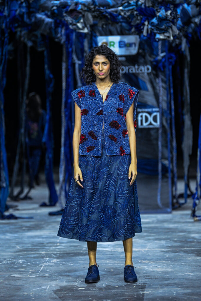 Payal has had a lasting love affair with denim, it fades and ages, it has a sense of nostalgia, offers versatility, many virtues. “We have added texture, prints and embroidery, oversized silhouettes,” she explains.
