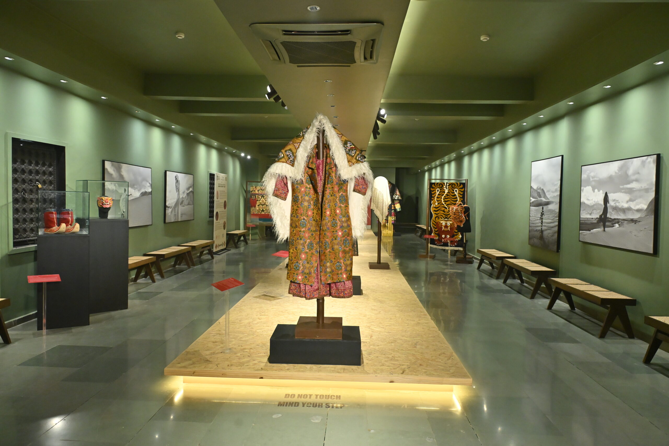 The exhibition features works by leading Ladakhi designers including 2112 Saldon; Jigmat Norbu and Jigmat Wangmo – Jigmat Couture; Padma Yangchan – Namza Couture; and Zilzom by Stanzin Palmo. Their creations range from sculptural installations and ceremonial garments to ritual objects and handwoven wool and pashmina ensembles, reflecting Ladakh’s spiritual, environmental and material connections.