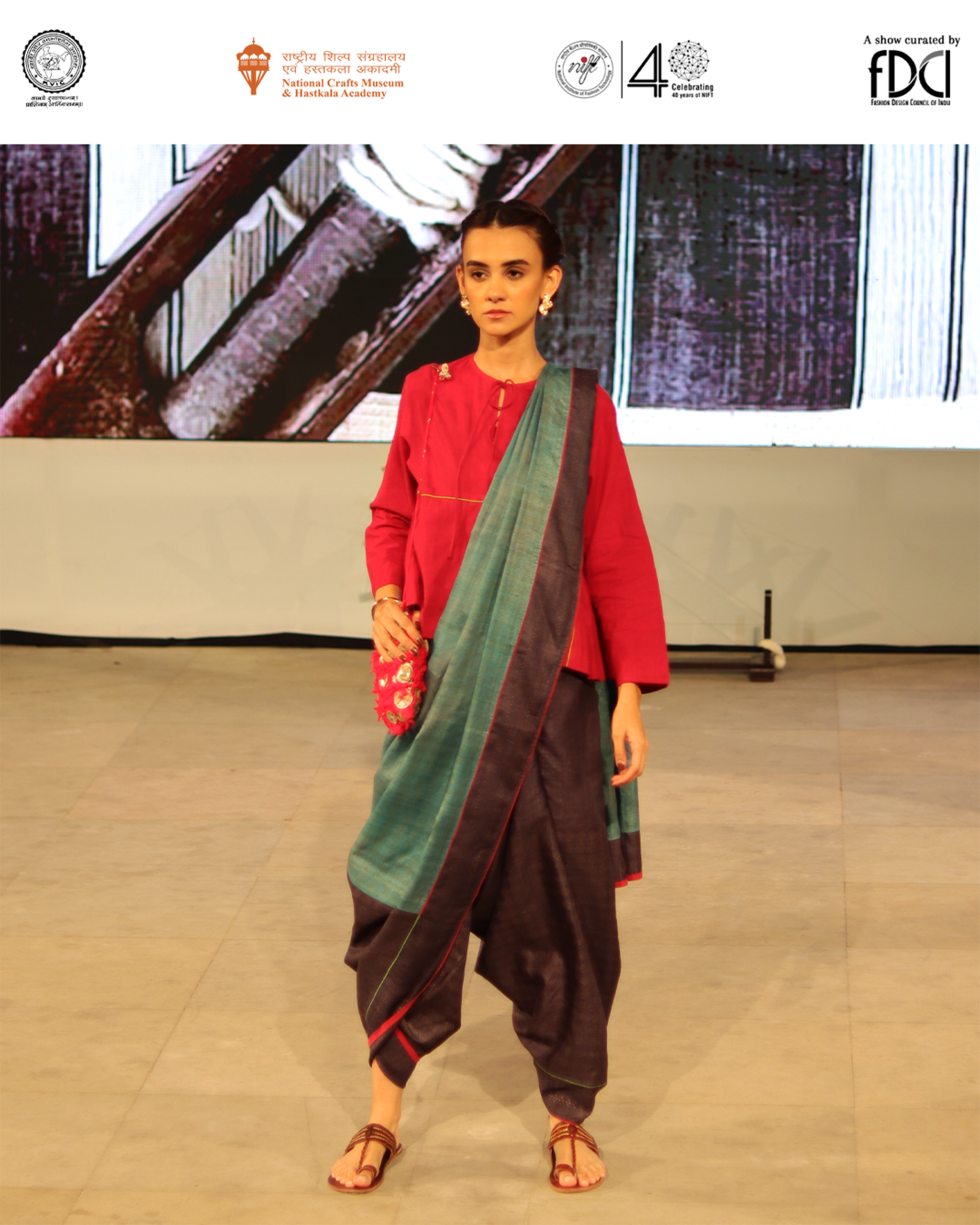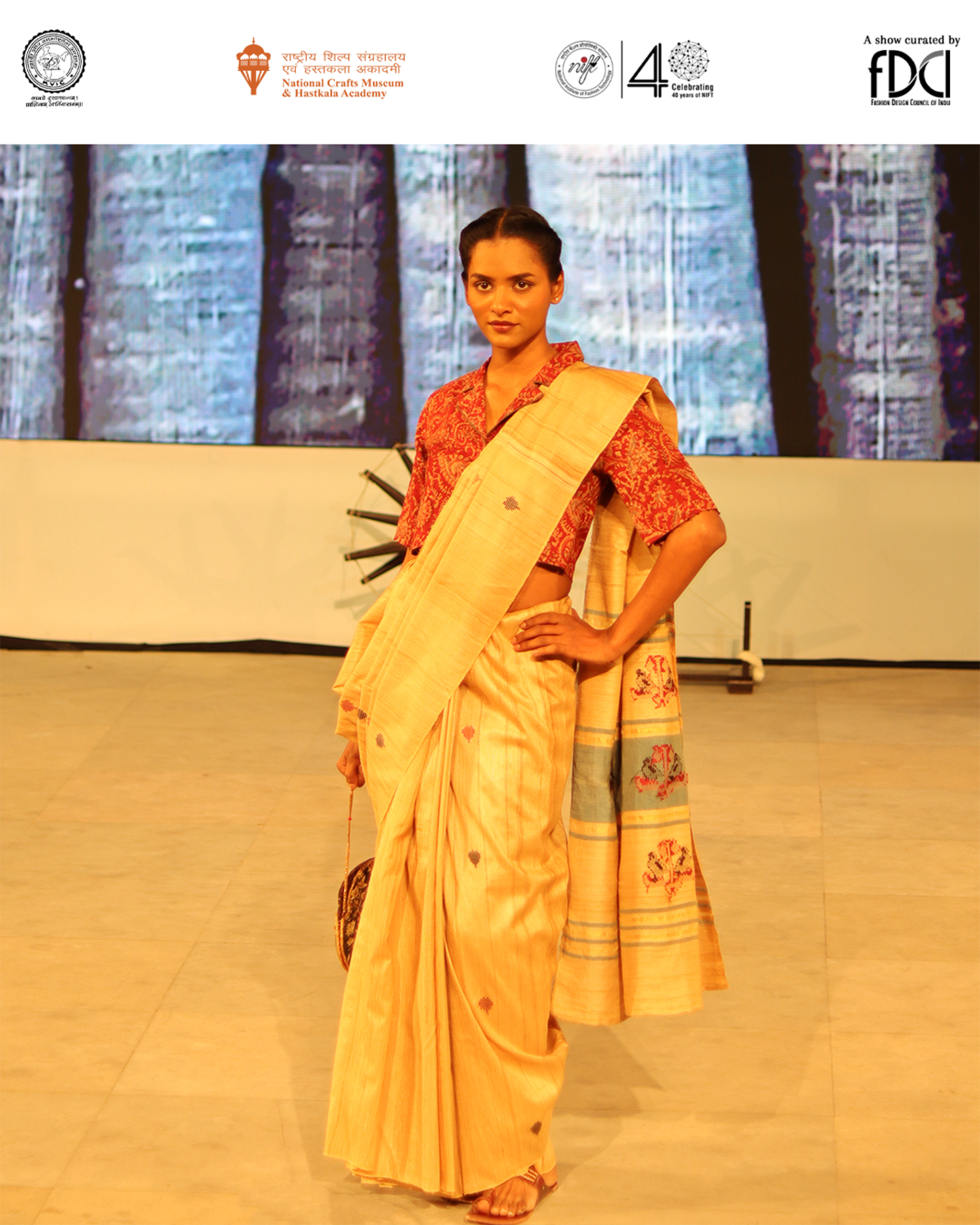 Hosted at the beautifully decorated Amphitheater, National Crafts Museum & Hastakala Academy, Pragati Maidan, the showcase served as a vibrant celebration of India’s heritage textile, presented through an immersive format that combined fashion, dance performances, and live singing.