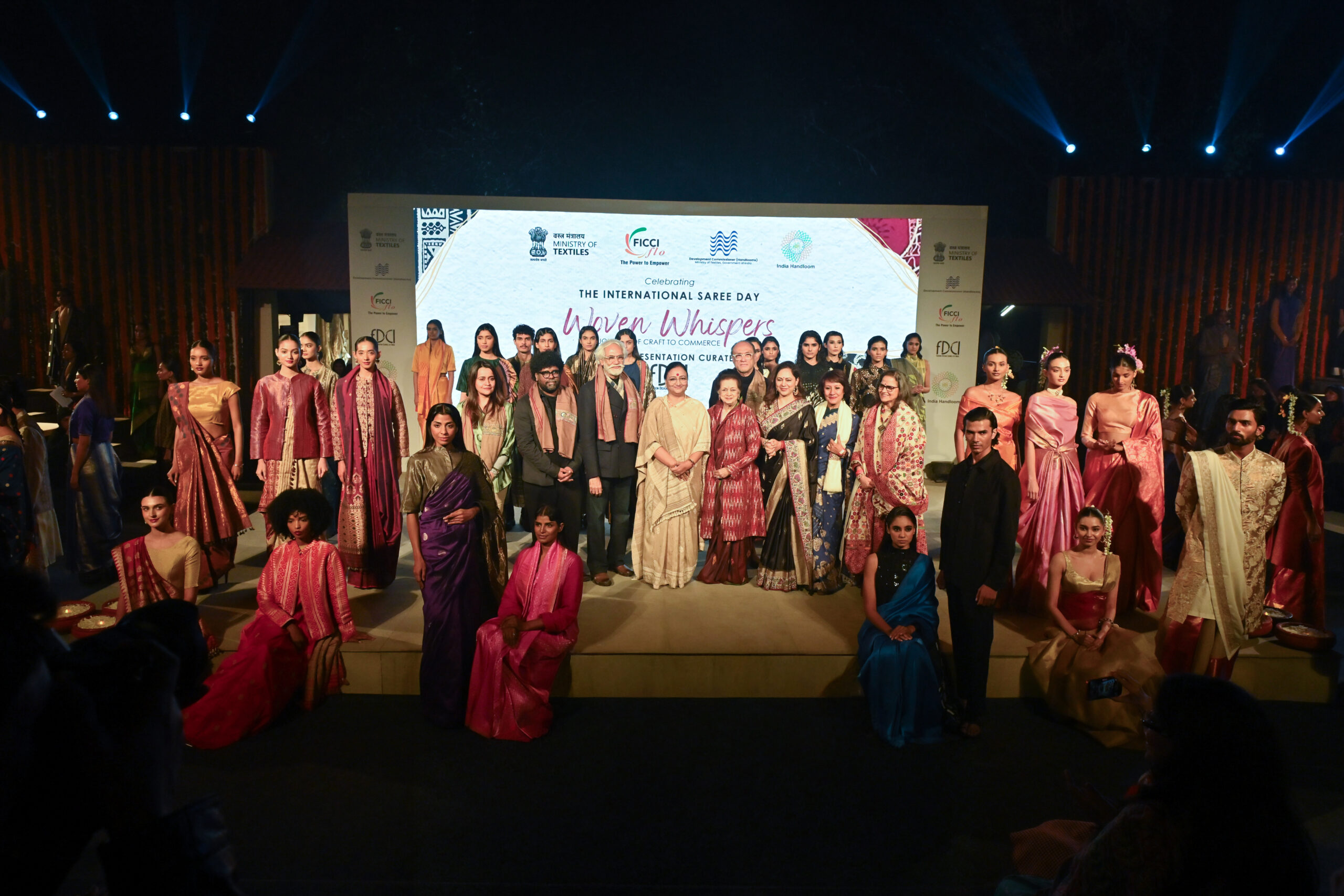 Woven Whispers, a textile presentation, unfolded on the evening of 14th December at theAmphitheatre, National Crafts Museum & Hastakala Academy, Pragati Maidan, on the upcomingoccasion of Saree Day, celebrating the timeless legacy of the Indian saree. A tri-partner initiative by the Development Commissioner (Handlooms), Ministry of Textiles, FICCI FLO, and FDCI, theshowcase was envisioned as a dialogue between heritage, fashion and the future, highlighting the evolution of Indian handlooms from craft to commerce while championing women weavers, artisans, and creative entrepreneurs across the country.