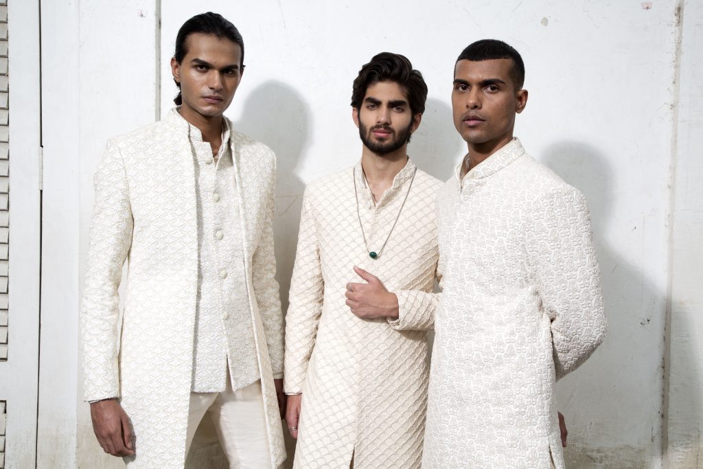 For a boy, who grew up with a garment exporter father, factory runs, were a part of his childhood, but he also evolved to understand the subterranean layers of the show business. When he began, he was often told, You wont survive here dressing men get out when you still can but he stuck to his belief system and crossed the Rubicon. Menswear is a huge industry today and it has changed dramatically in the last ten years, as grooms appreciate the work we do, the finer details, the attention to finish, he explains.