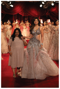 “We sent Shilpa two pieces and she made some adjustments based on what she liked, it is a complicated piece, and took many man hours to construct, due to its different layers,” says Dolly. For the self-taught designer couture is timeless and despite the post-pandemic temporary lull, things have started returning to normal, with people investing in expensive pieces.