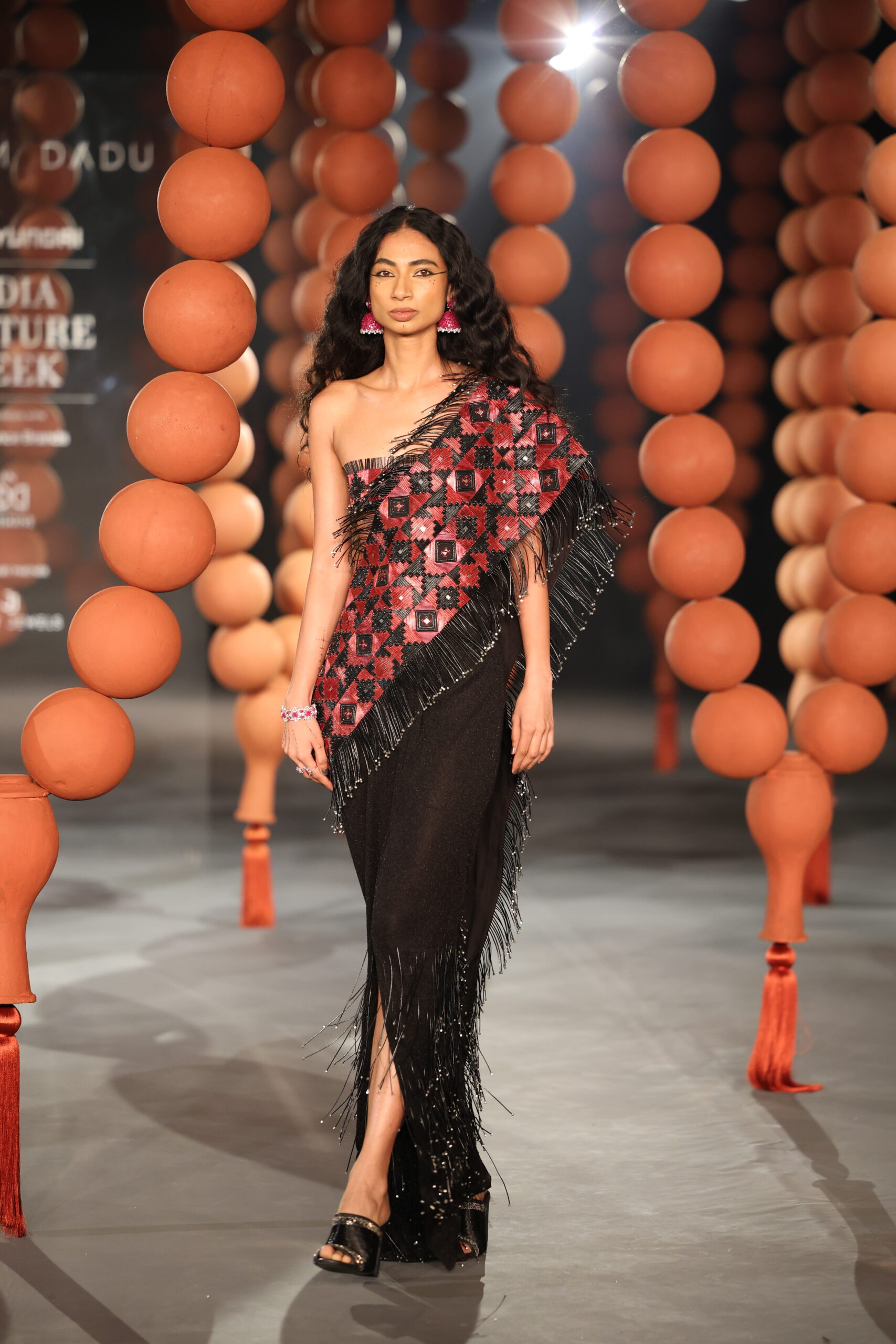 Indian fashion is now looked upon with respect, also curiosity, we are no longer a manufacturing hub, crafts and artisans are the showstoppers, but there is room for many India stories. “There is India traditional, modern, and futuristic. Our traditional weave had been heavily dependent on motifs and embellishment, so what’s wrong with shine? I don’t find it repulsive. Even if you look at Jamdani it is white, but the motifs on it give it that unique character,” she admits.