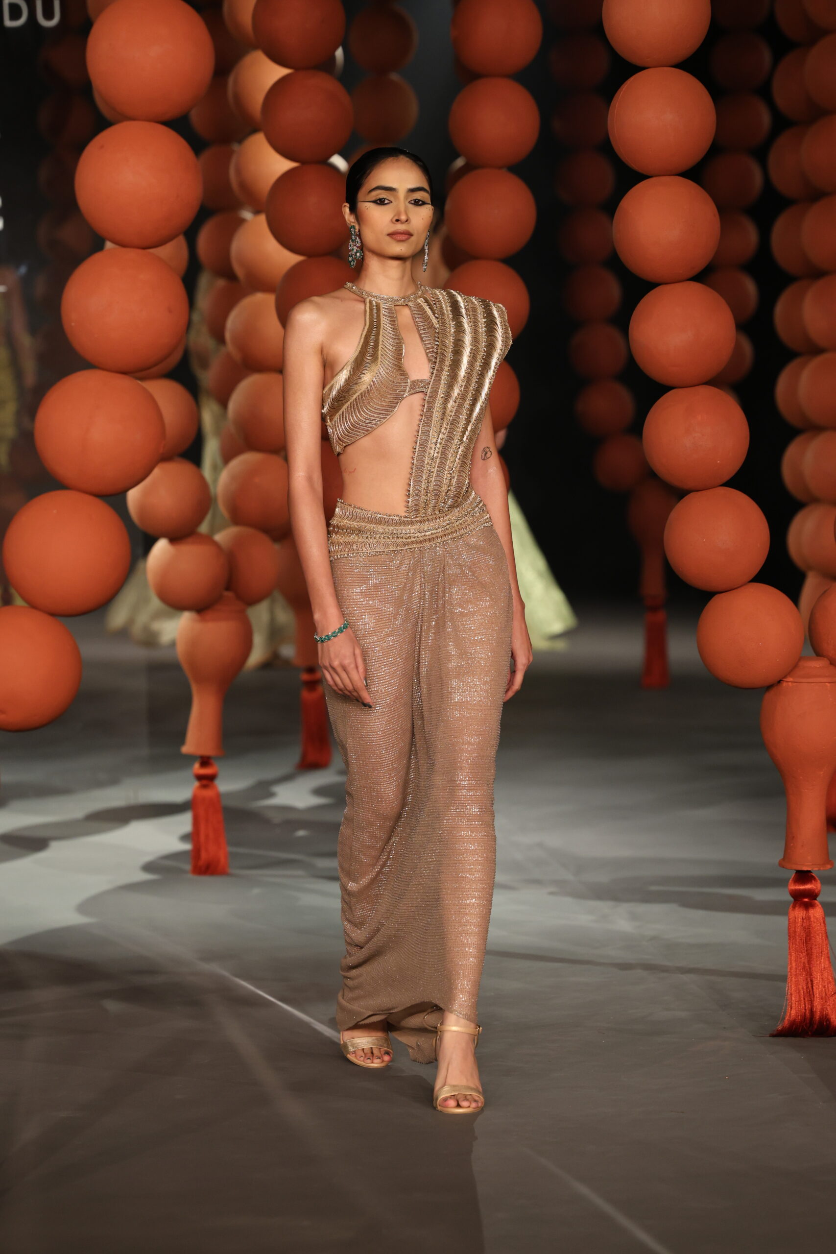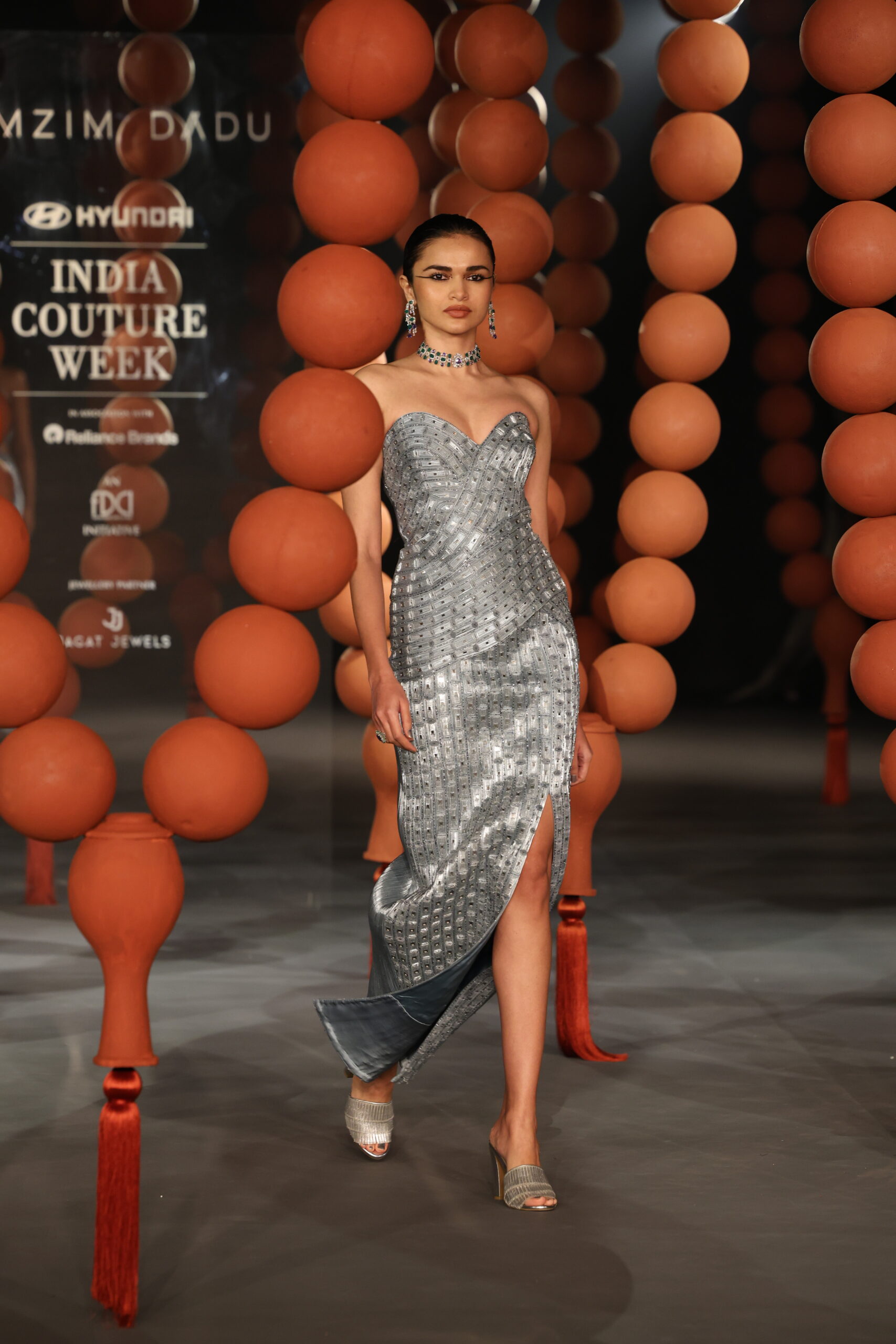 Age and time have taught Rimzim Dadu the importance of merging commerce with fantasy, this year her Banjara tribal jewellery inspired chainmail dress took one month to execute, just like her rejigged sari not swathed in metres of fabric-happily crisp.