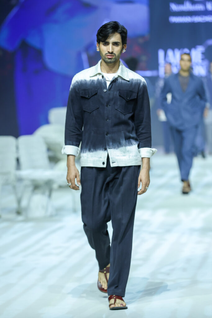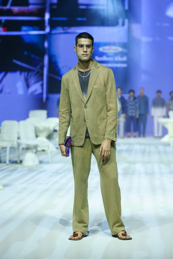 The fun is in zippers, reflective tapes to buckles added in unexpected places, in all the 13 looks that he showcased on the runway at LFW X FDCI khadi show. “The new generation prioritizes comfort over style, access to global runways through social media has been a game changer. Earlier menswear was basic linen shirts, now there is an explosion of colour,” he adds.