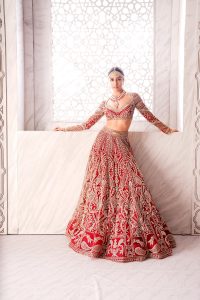 As their ICW 2021 line Love is…paid homage to the changing colours of love making it as strong as the monument which has been a beacon for many looking at eternal companionship, they added Mughal motifs and a sea of pearls to set the rhythm of the collection.