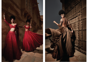 With civilization forced into the confines of their homes looking for a metaphorical oasis, the word became an emblem for the duo. It brings back visages for those who need beauty but are deprived of it, glamour to those missing it, power to those feeling helpless. Shot in Suryagarh, Jaisalmer, which has given the collection an anchor, with the dunes and rocky terrain creating a template of resilience with mellow strains making it apt for a modern narrative.