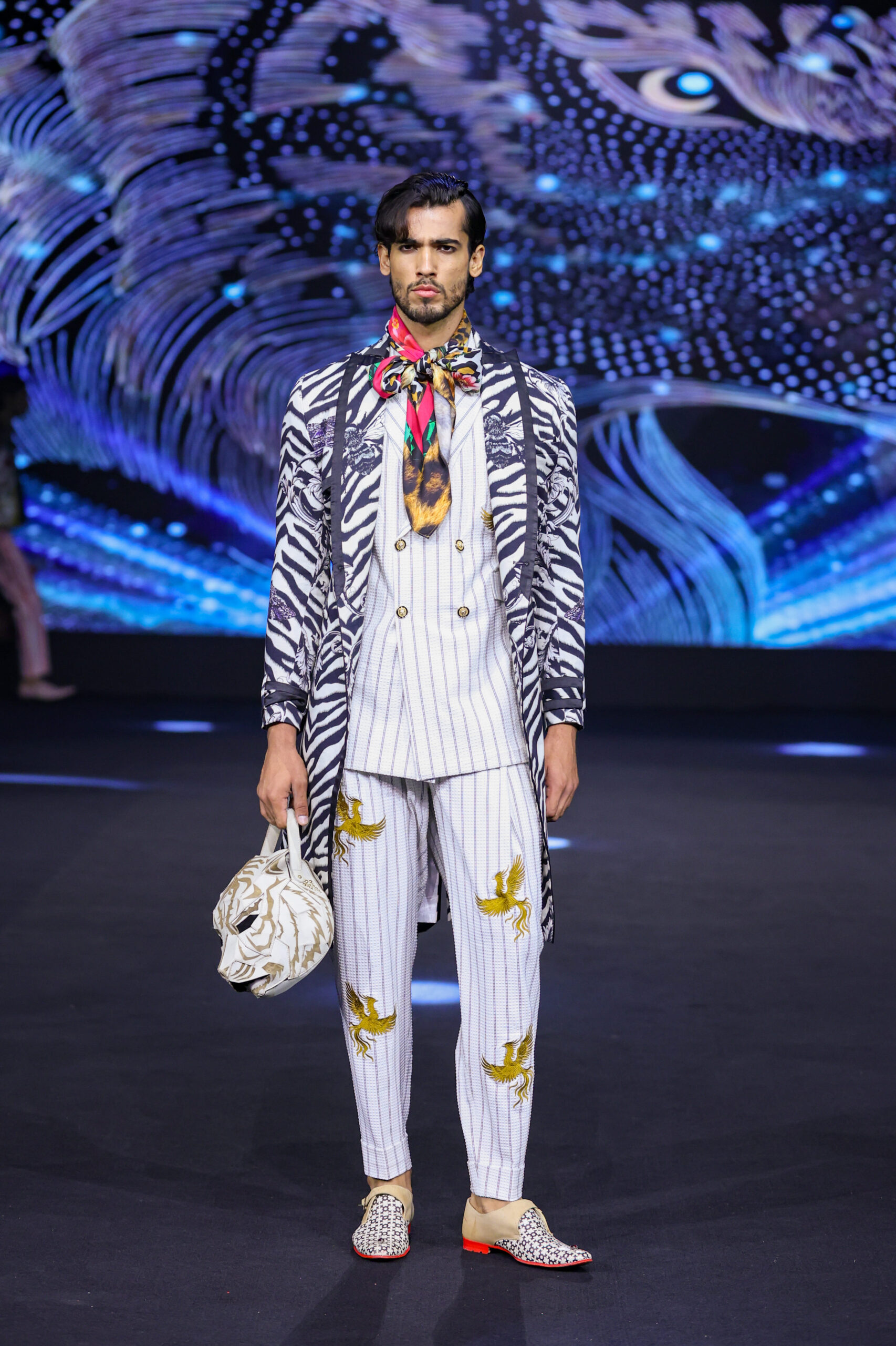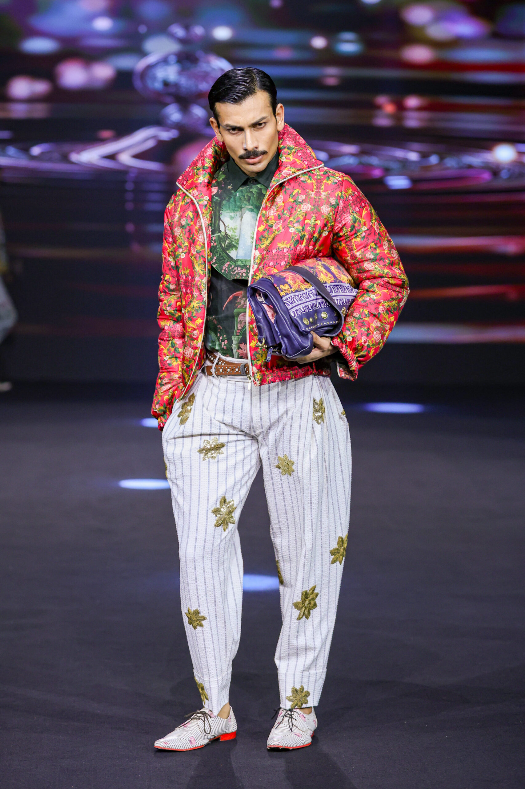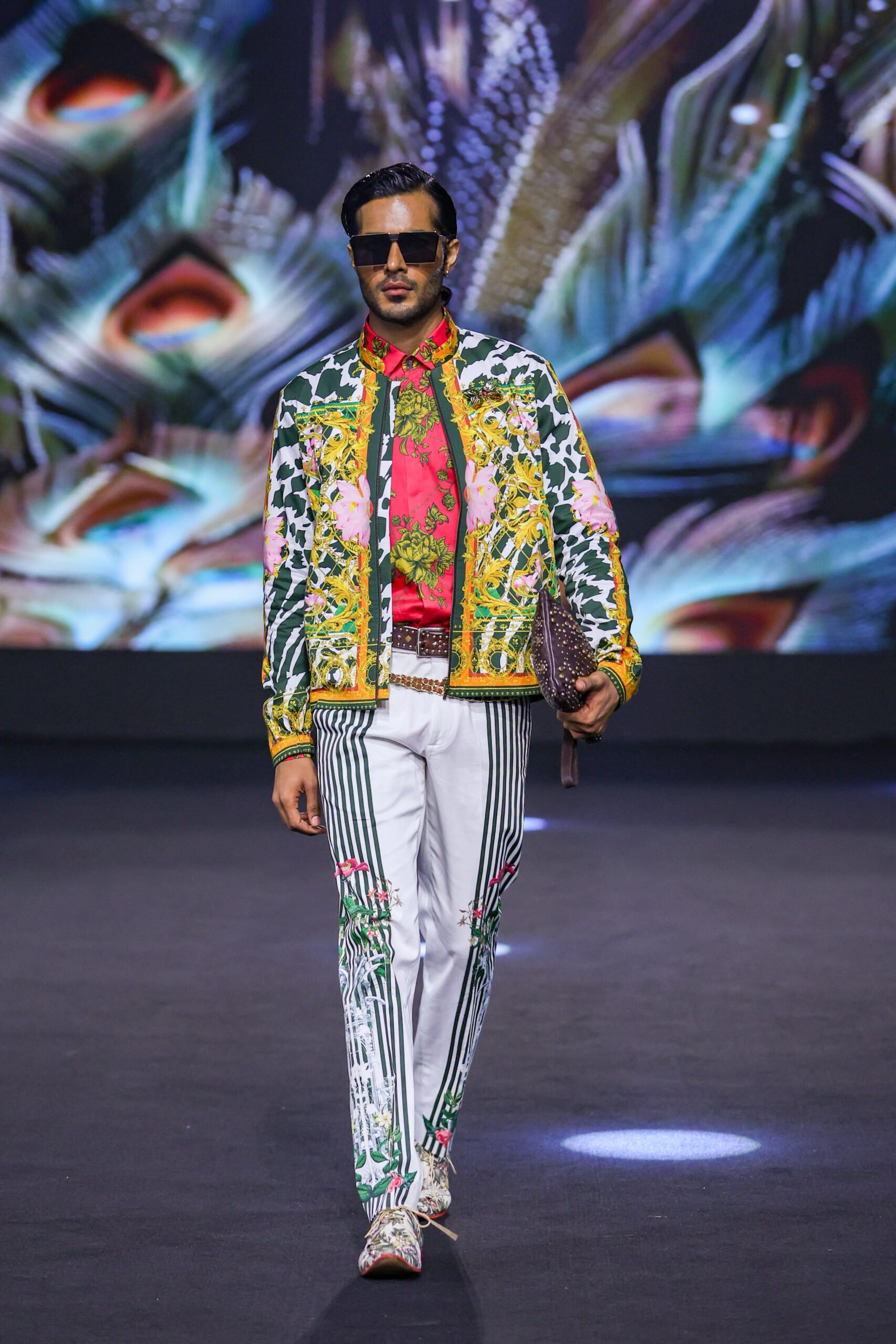 Thereby, a global yet unmistakably Indian print narrative rendered onto natural fabrics like handloom cotton, wool, silk and silk-linen blends, culminating in vibrant menswear with impeccable tailoring and signature details that invites self-expression. The fabrics are ethically sourced, digitally printed to minimise water and fabric wastage, and local artisanship is celebrated with every stitch. Fabric waste is reused into handbag linings, pocket squares, bows, brooch pouches etc; a sustainable luxury brand that is inclusive and supportive of the system and people who create it and wear it. Signature engineered printed shirts that reduce pattern and fabric wastage, bomber jackets, printed parkas, bespoke suits, modern kurta coord sets and pret couture dresses for women — the brand is an artistic rebellion against the mundane, celebrating culture, local yet responsible craftsmanship.