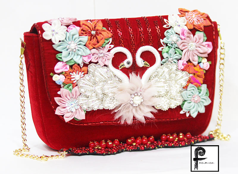 At our In- house studio based in Mumbai – Juhu , we create Quirky Accessories, Bridal Gowns and Cocktail Gowns, beautifully hand crafted in Hand embroidery and Textures.
