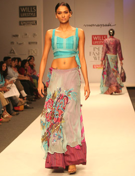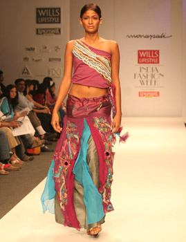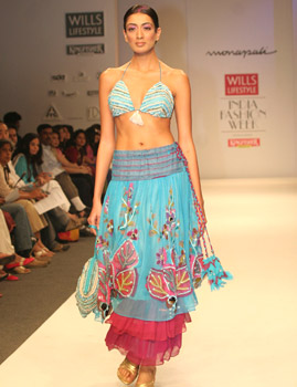 What make the designs distinctly Monapali is the unconventional mix of mediums: be it in textures, prints or embroidery. The designer duo were the ones who revived kantha, folk (Madhubani, Worli, Pattachitra) tribal motifs and elevated it to the status of high fashion. They have also combined block print with spray/smudge prints and hand paint, cut through layers of fabric to create distinct patterns and torn fabrics to create anew. In essence the Monapali garments have a signature look which brings forth the best of the East and West.