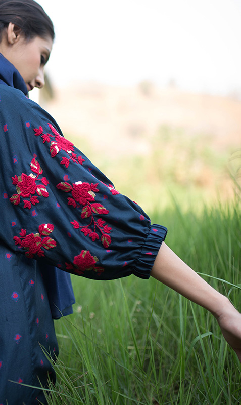 Keeping the handwriting essentially subtle & maintaining a refined aesthetic, Myoho stands for understated elegance & easy, relaxed wearability. Maintaining a definite contemporary language , we attempt to blend the essence of Indian handlooms with a subtle modern sensibility dipped in a palette dominated in magical Indian tones.