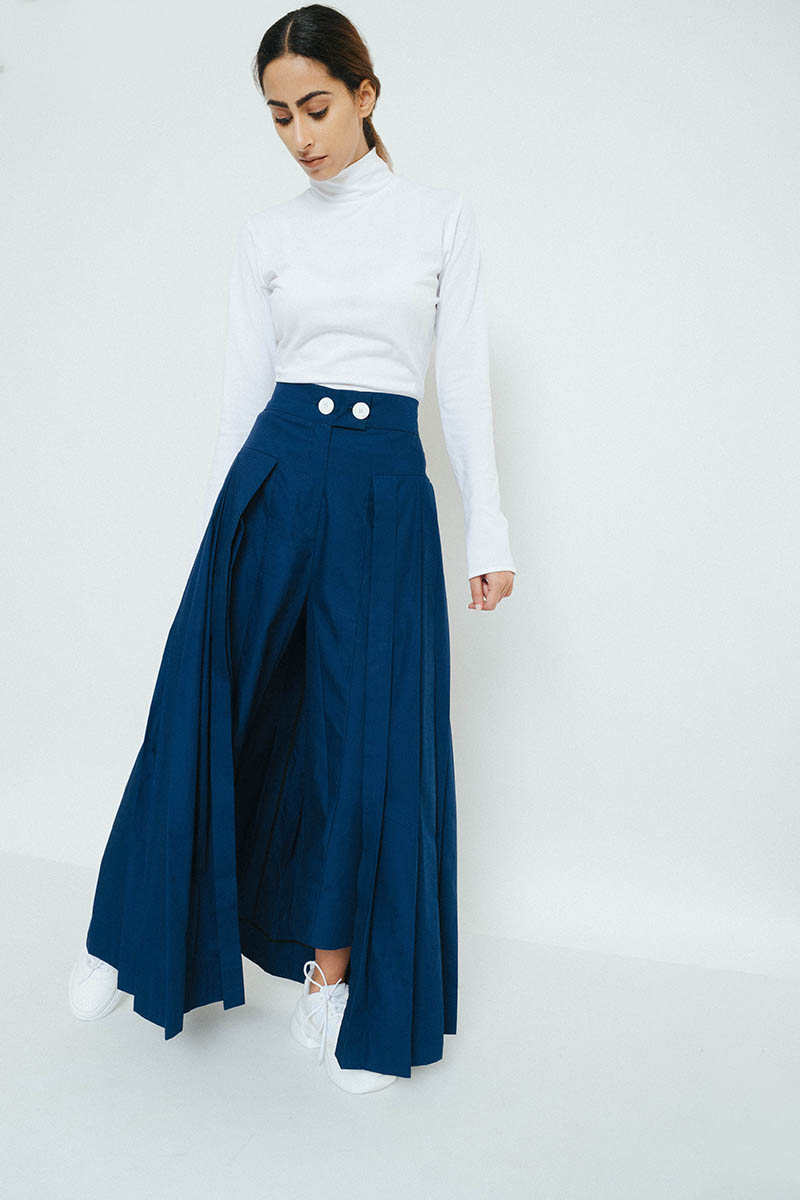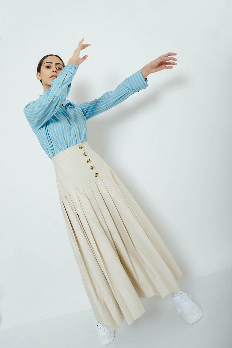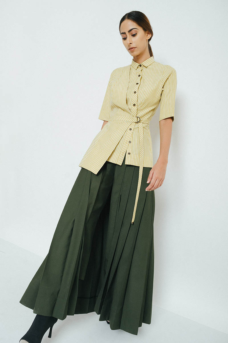 Her fascination towards utility clothing came from her early school days spent in uniforms. The whole idea of how one thoughtful design can work for many different body types. NOTEBOOK takes inspiration from school uniforms, using fabric as a paper for re-engineering silhouettes, using a very academic colour palette. After graduating in Design, Niharika had the opportunity to design for various minimalist labels that further enhanced her technical skills.