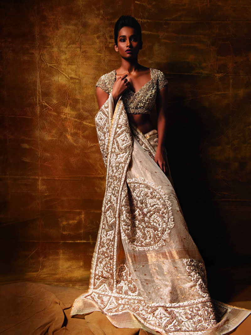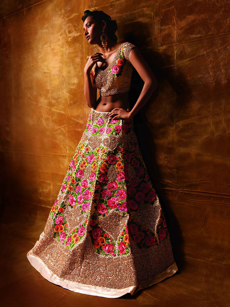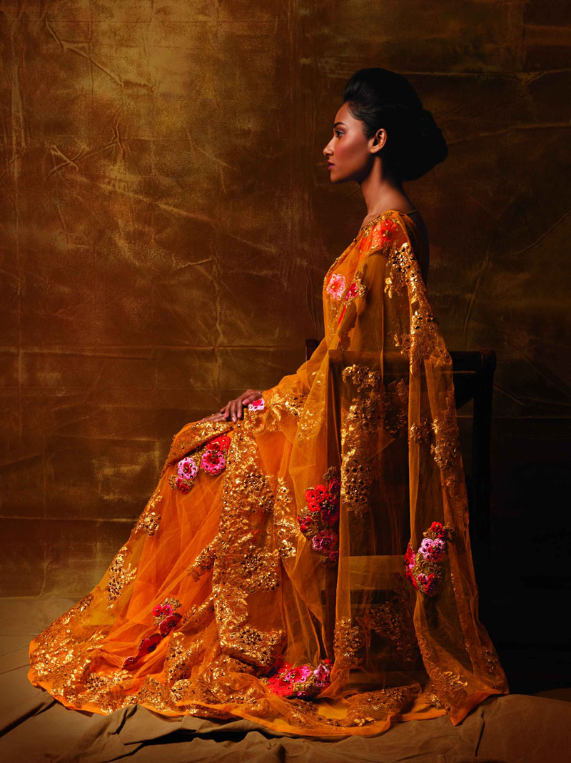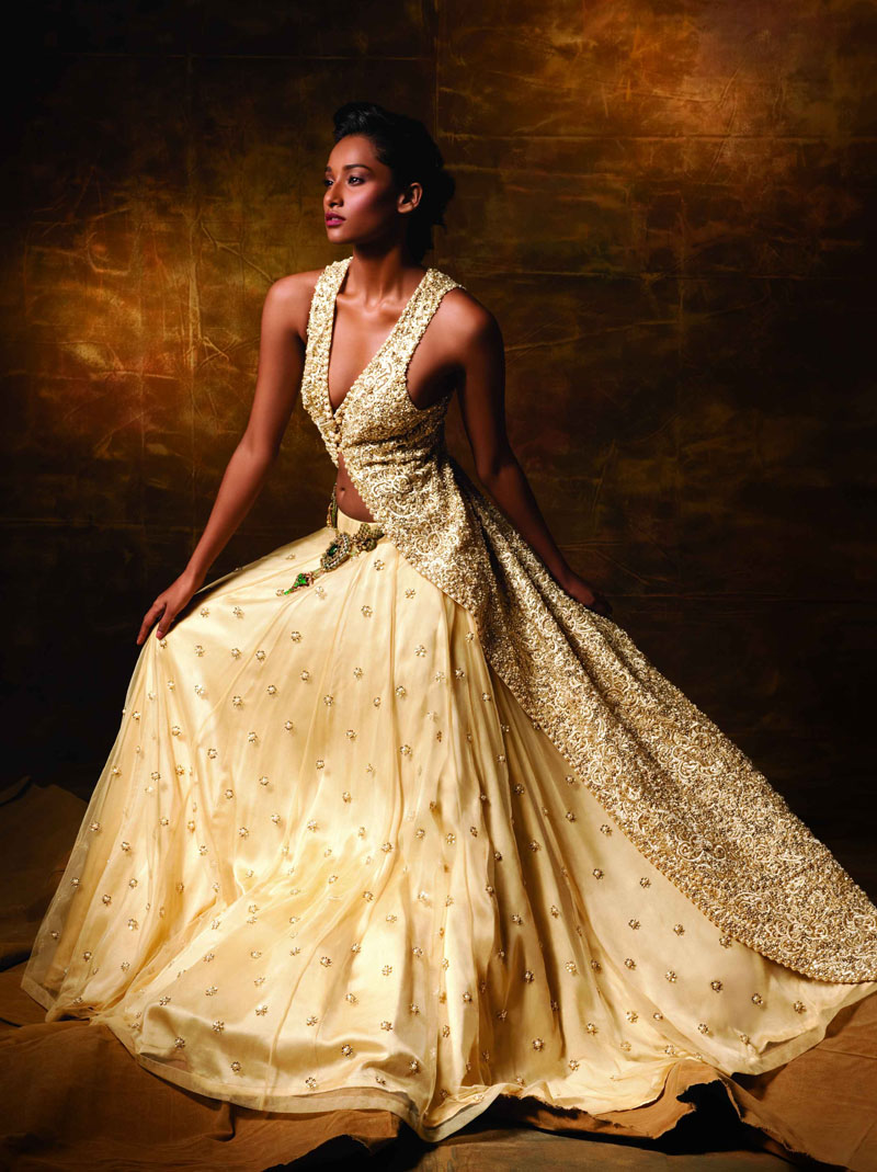 Her timeless couture garments comprising sarees, lehengas, ornate kurtas are treasured masterpieces passed down from one generation to the next. Her creations are classic yet versatile with an avant-garde modern touch given to even the most traditional outfit while retaining its richness of embroidery, detailing and texture.