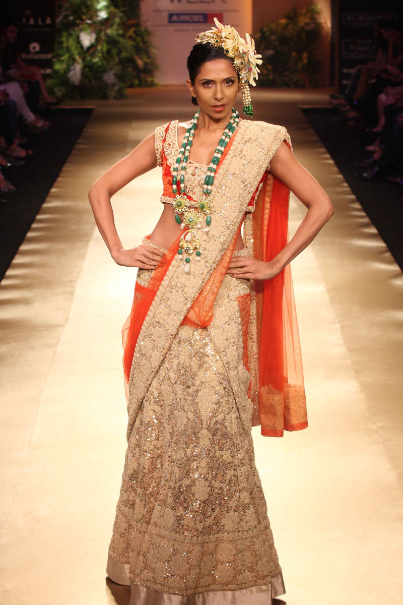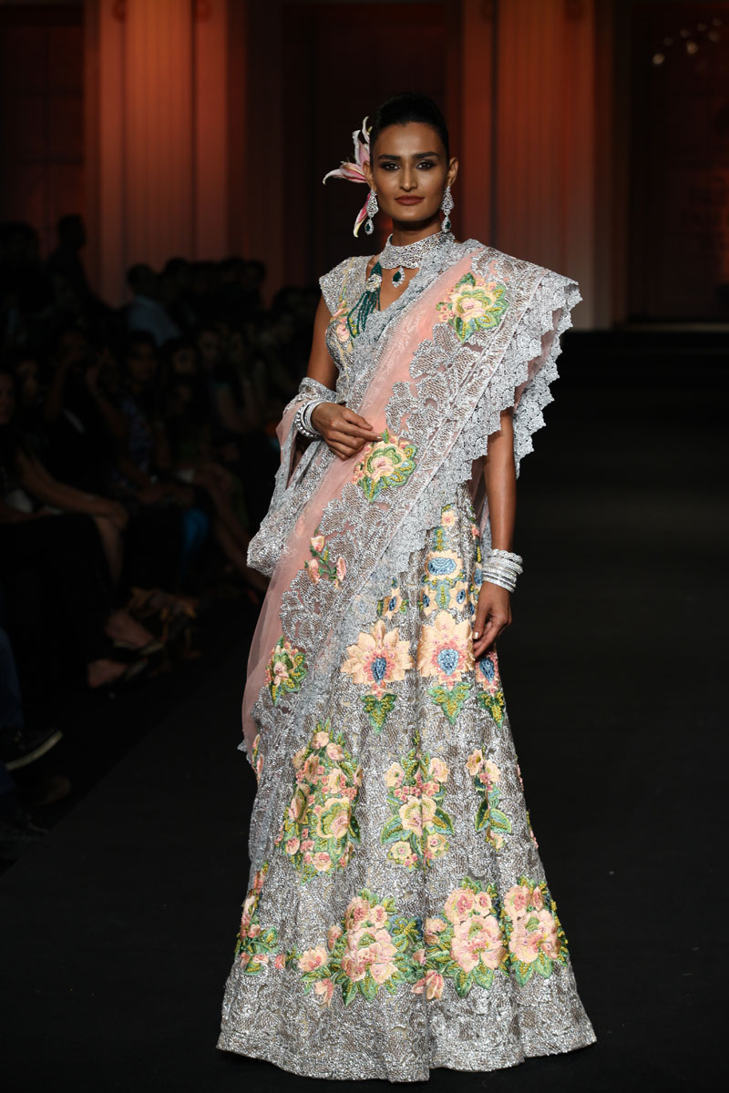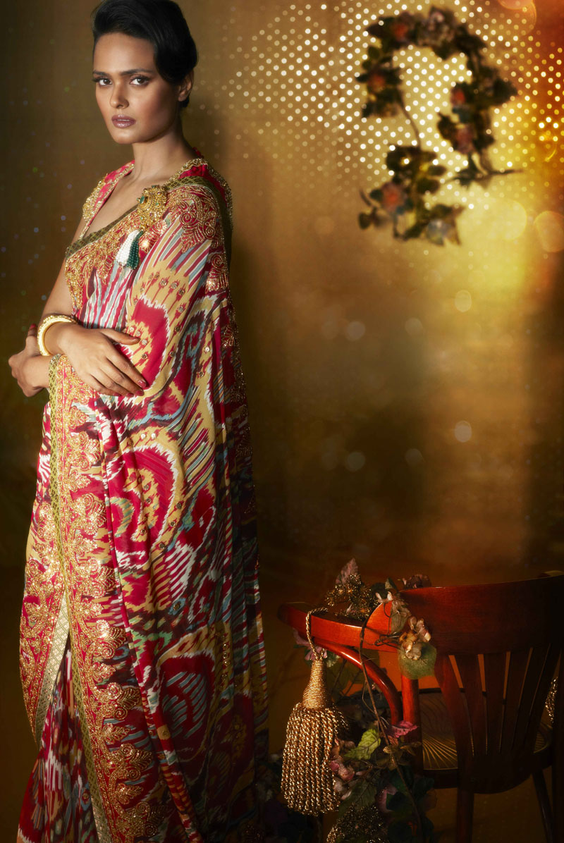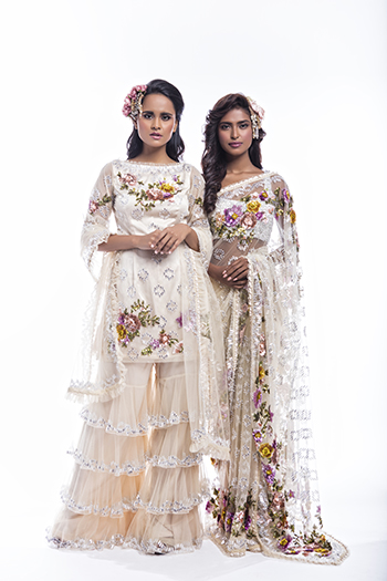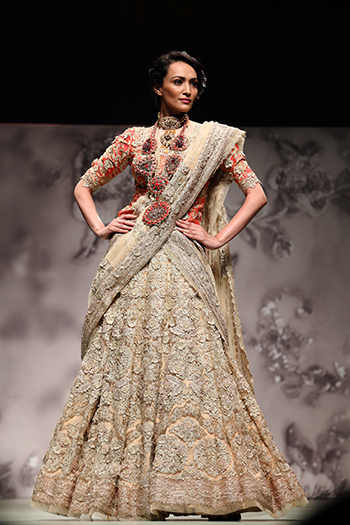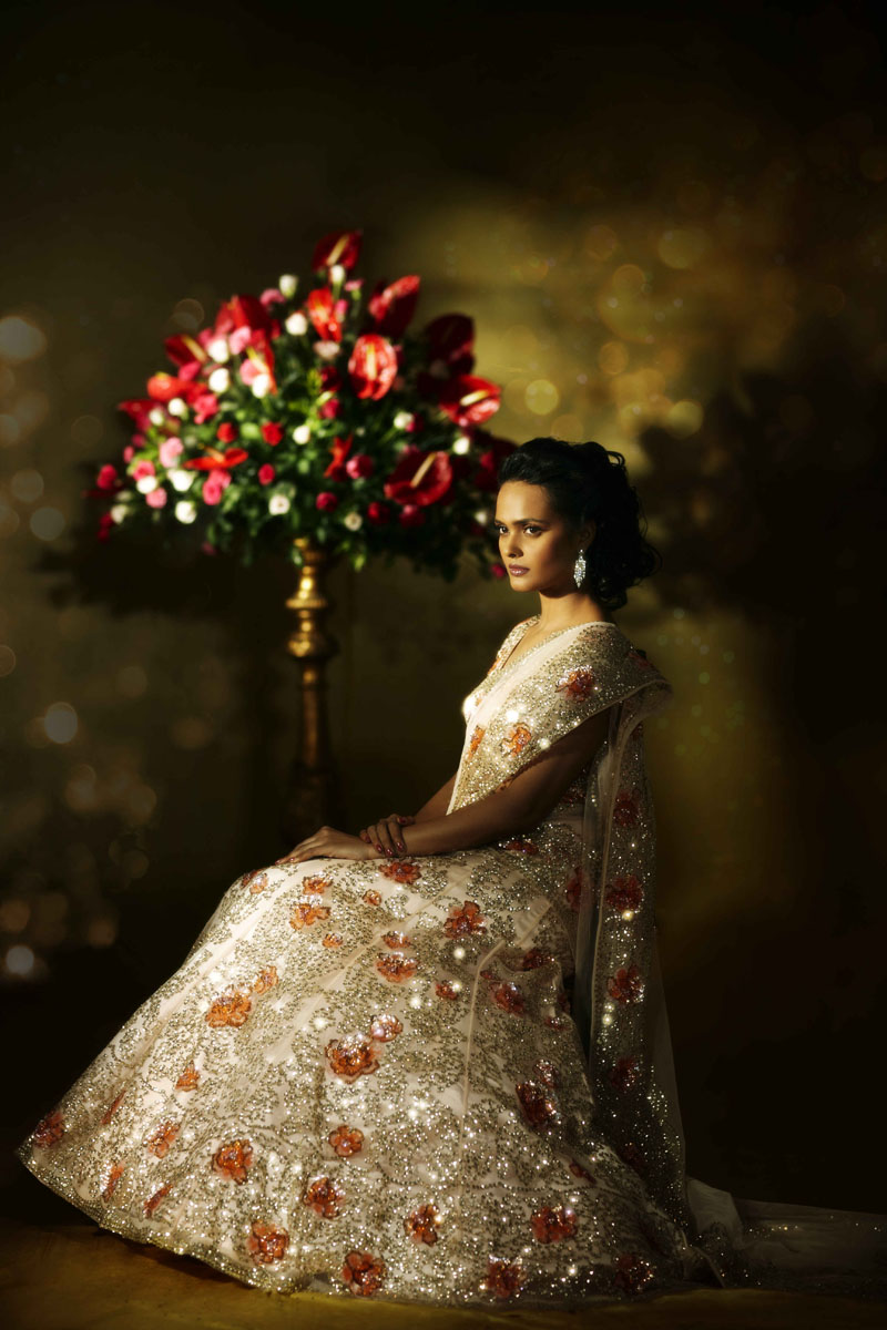 Her timeless couture garments comprising sarees, lehengas, ornate kurtas are treasured masterpieces passed down from one generation to the next. Her creations are classic yet versatile with an avant-garde modern touch given to even the most traditional outfit while retaining its richness of embroidery, detailing and texture.