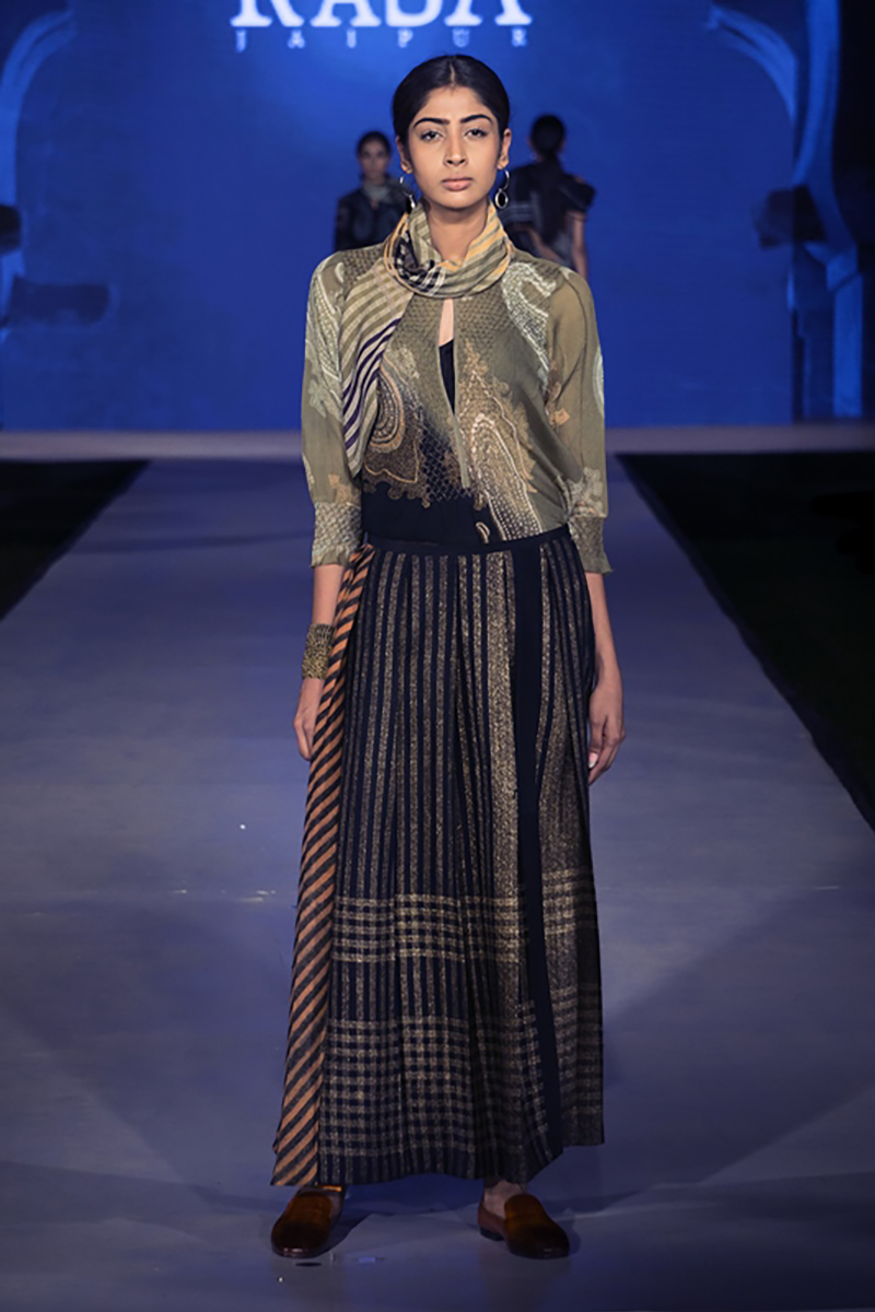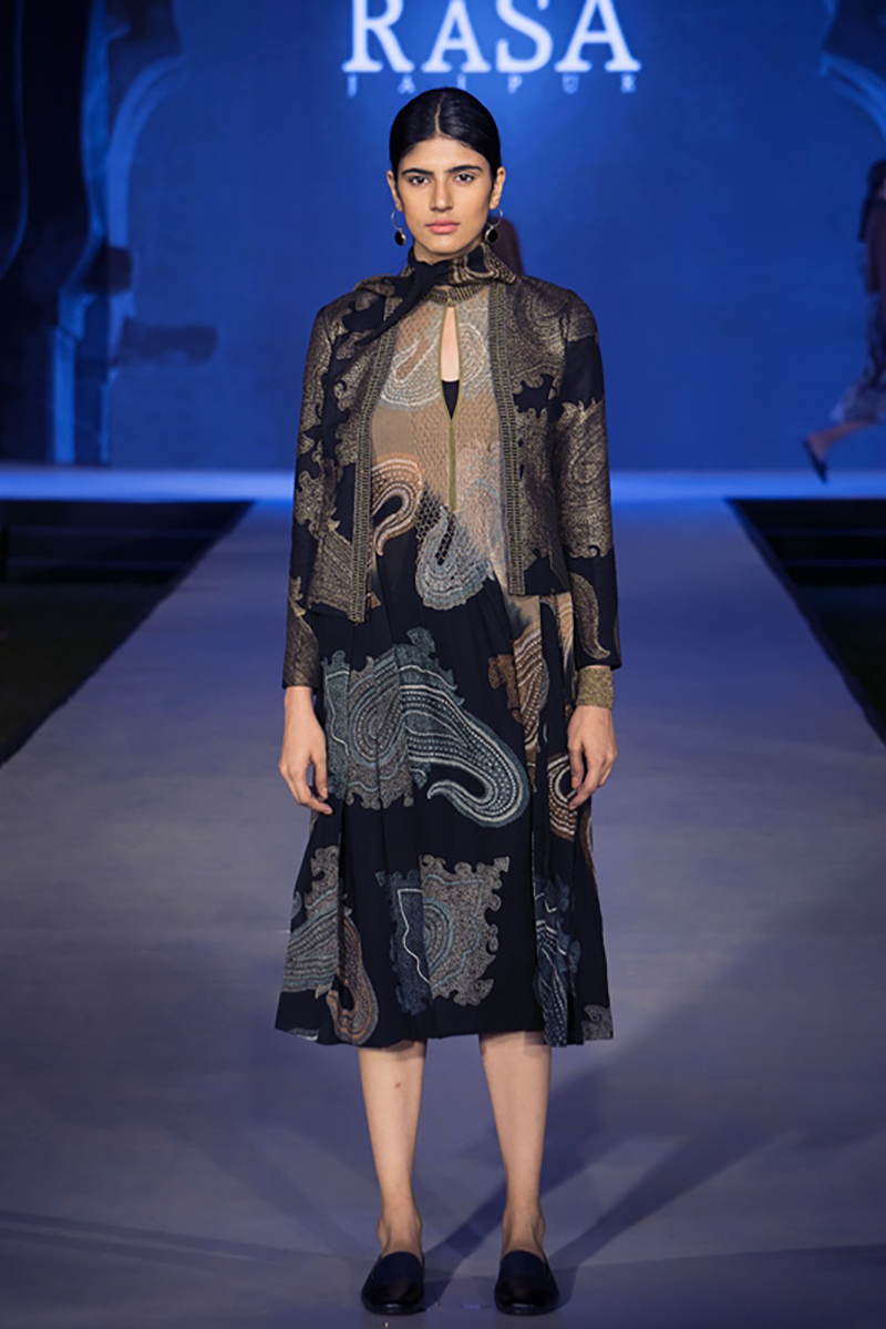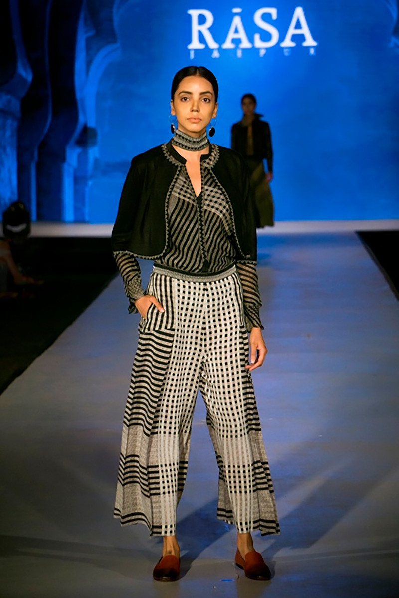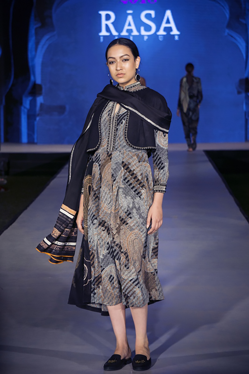 RASA was incorporated two decades ago by Madhulika and Manish, graduates of the NIFT, New Delhi in fashion and the NID, Ahmedabad in textiles. They use the traditional craft of hand block printing and have taken it to levels not seen before in this medium. Their clothing and home textiles reflect modernity with echoes of the past. Blocks are used to create patterns not always reflective of the elements contained within. The style is elegant with every detail carefully planned to achieve perfection in fit and finish.