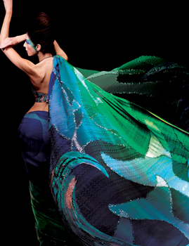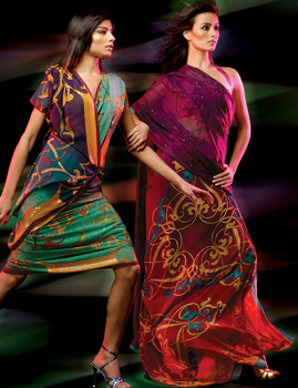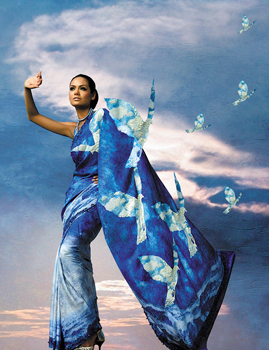 Satya Paul saris are famous for their vivid colour palette and powerful prints. The patterns are inspired by the liberal and modern woman. Satya Pauls sari collection is a tribute to Indias heritage as a hub for the arts, crafts and textile industries. The printed shawls and scarves take inspiration from Indias beautiful landscapes, flora and fauna and architectural treasures.