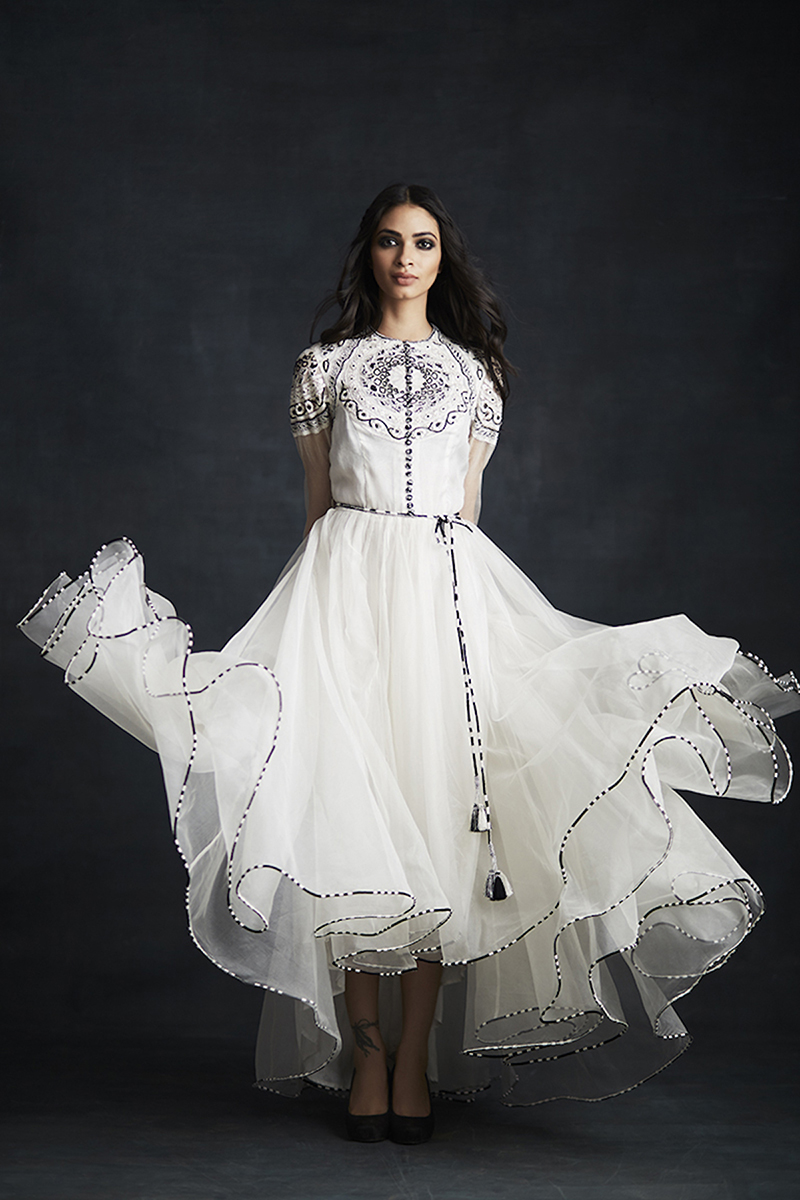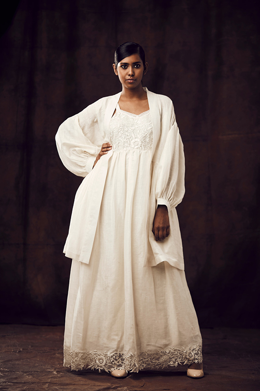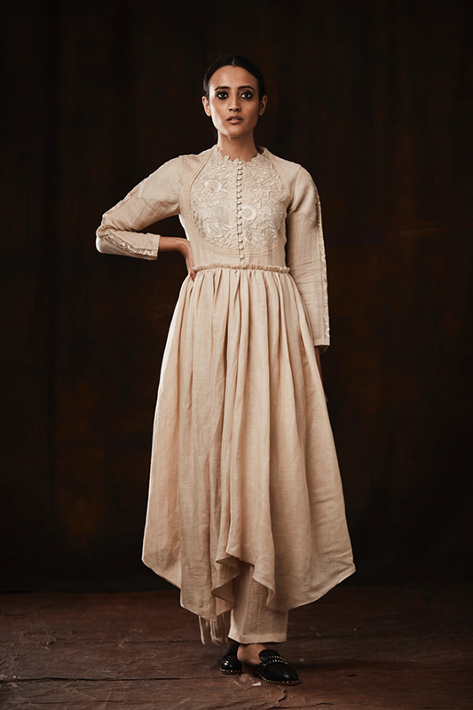 Her collections exude an aura of art; while being contemporary, classy and eclectic at the same time. Astral designs and purely handcrafted pieces are some of the major highlights of her creations. The brand specializes in weaving and textile braiding while playing around with different surface textures and silhouettes. Seeking inspiration from everything around her she treats ever apparel as a piece of art and is always brimming with fresh embroidery details and designs.