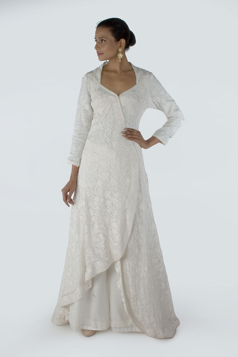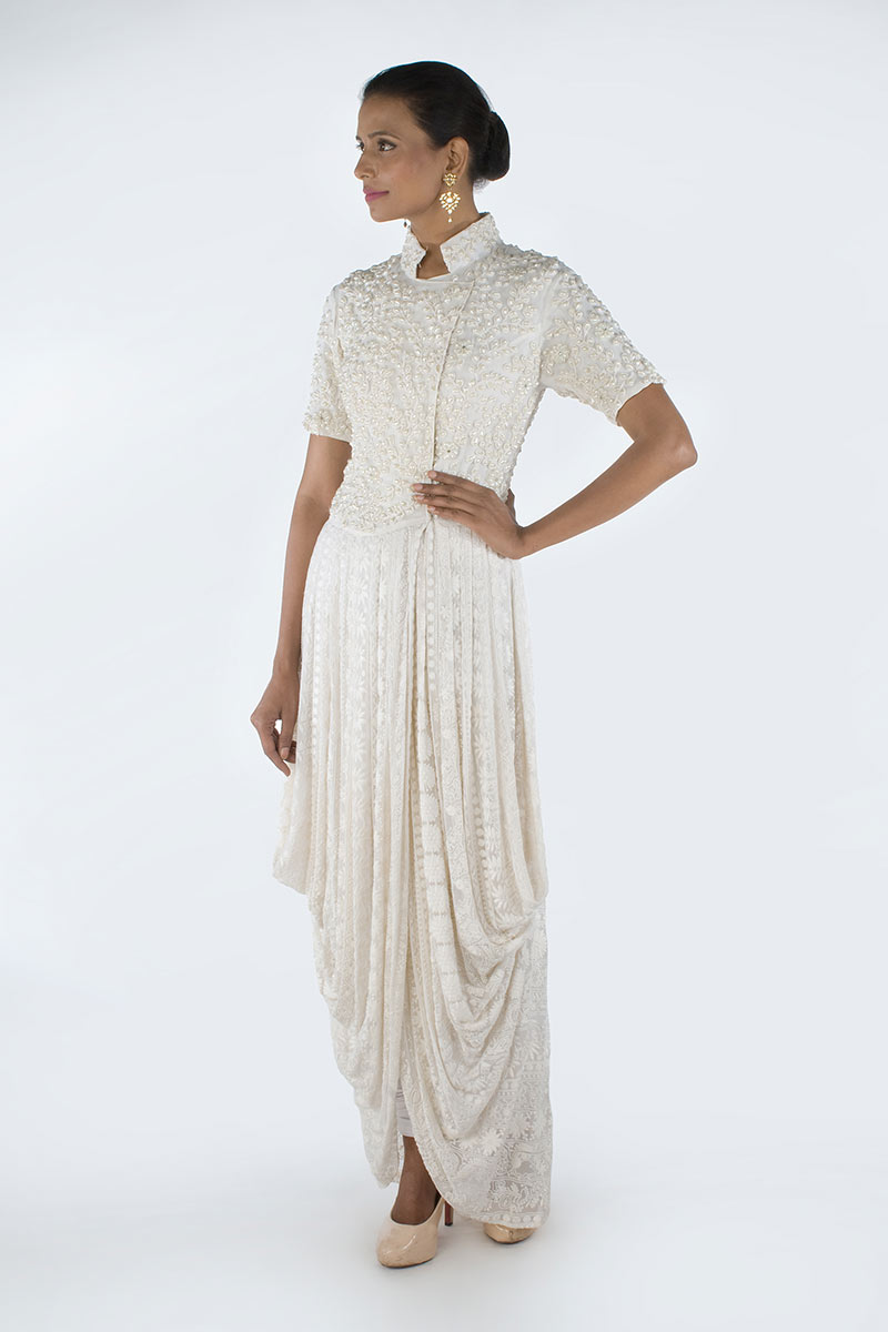 NIFT and Central Saint Martins graduate in fashion, Sonia Sarin Jains first choice for profession was Law and not fashion. Her mother is the labels muse and also its first client, critique and curator. Sonia Sarin Designs had started as a hobby in her garage with one master and one Pfaff machine in 2004. The label had its first show in 2010. Deconstruction is her forte, creating and designing out of any fabric form is what she loves.
