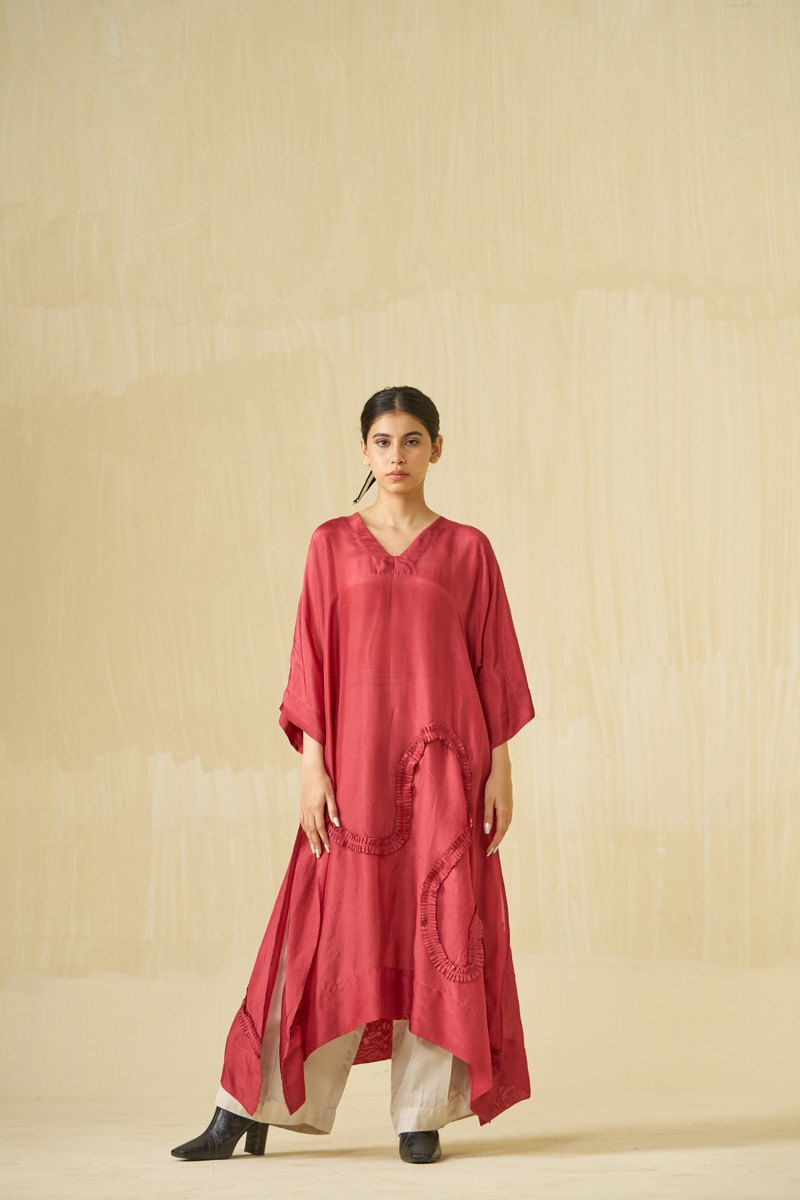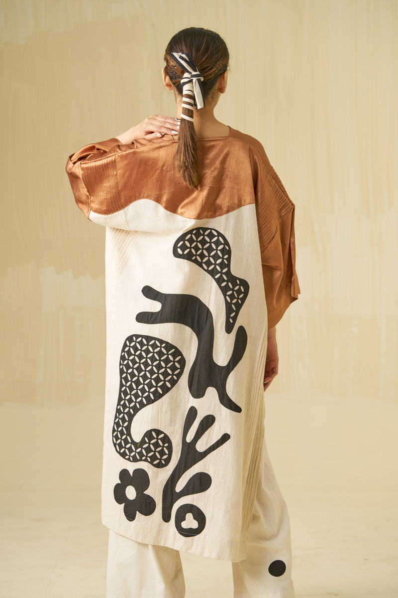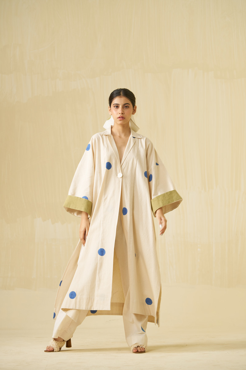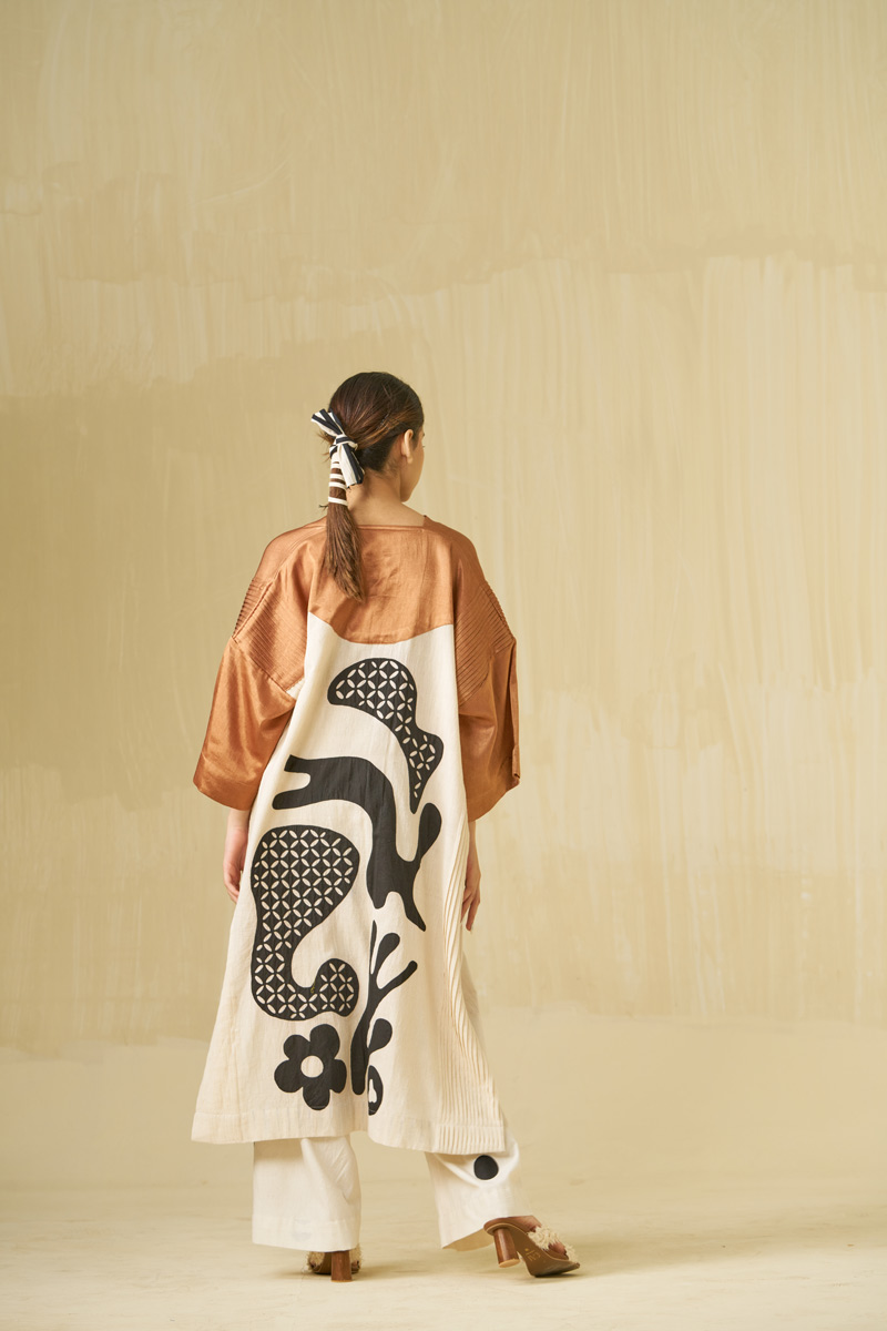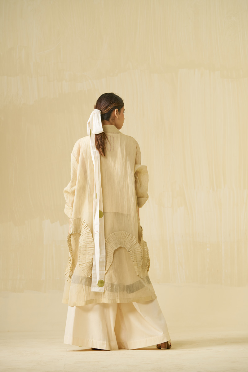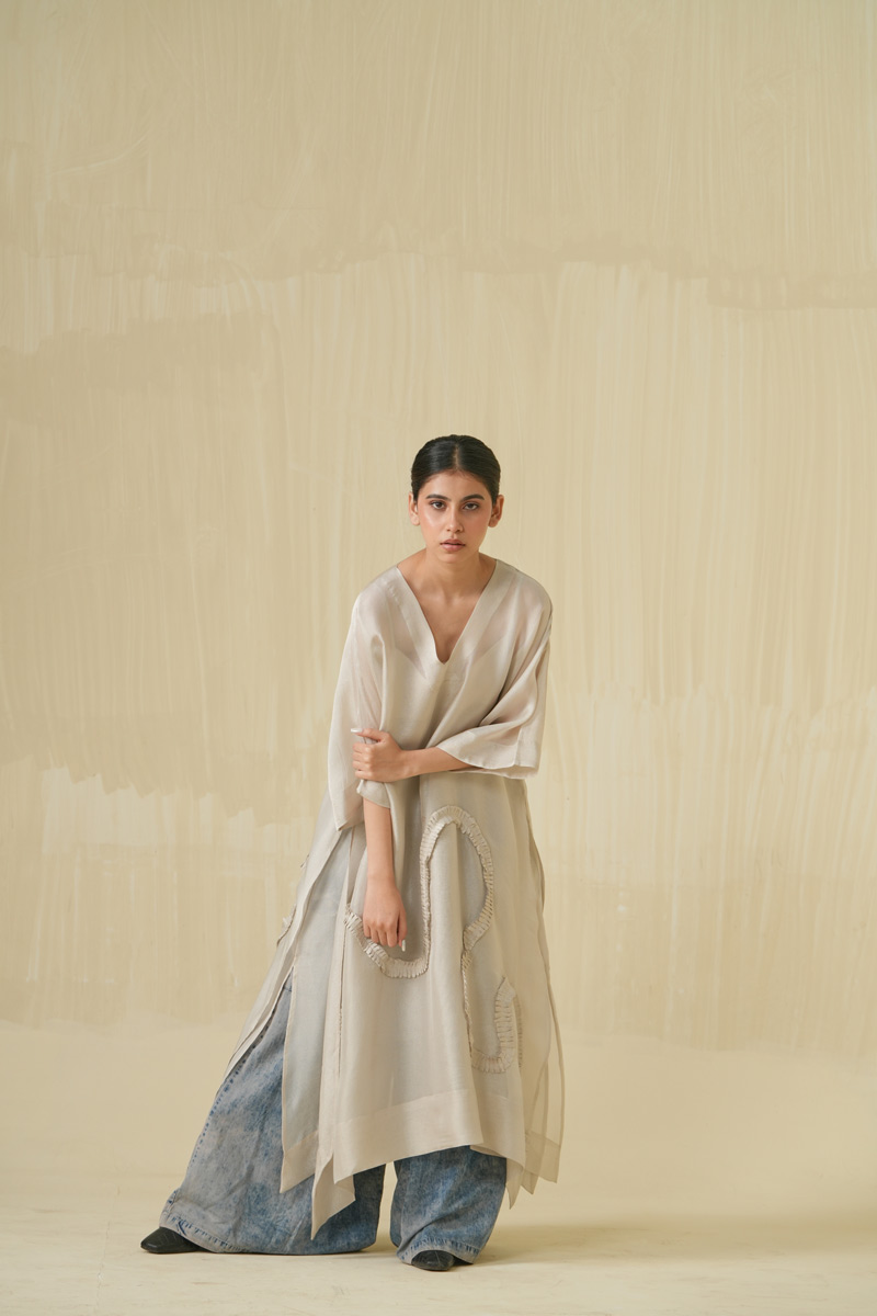 Unlike classic western approach of confining and shaping the body, we at stoïque provide the body the luxury and freedom to shape the garment. Our designs are executed in carefully sourced, refined quality fabrics of natural fibres, all contributing elements inducing ones awareness and state of mind.The colours are rather muted, some un-dyed and in their loom form, with bright hues for an element of surprise.