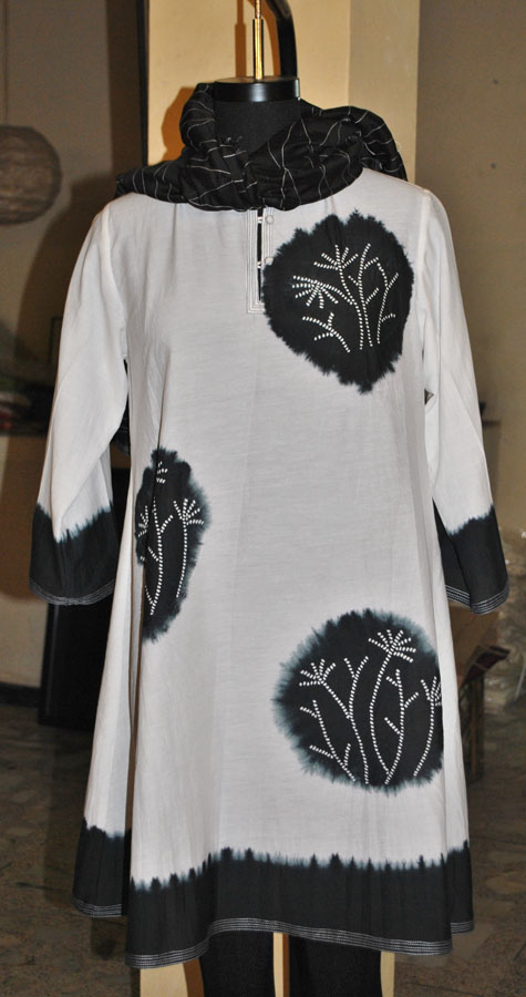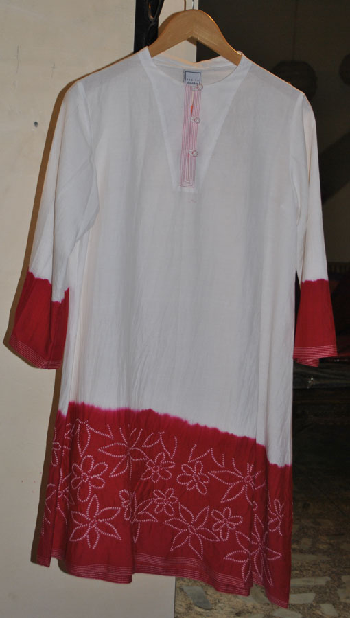 Melange, Cinnamon, Amethyst, Elahe to name a few. Apart from retailing under her label, Sunita has been a Fashion & Textile consultant to the Textile Ministry where she had the opportunity to travel to remote villages of India & create new designs in Textiles & further develop them into products, which are appropriately marketed. She has also been a design consultant to C.C.I.C. for a year where she designed new textiles in Chanderi, Ikats, Tussars, Khadi, Mangalgiri, Barmer Applique Work, Crewel Embroideries, and Silk Cotton blend fabrics from West Bengal etc. for Sarees, Apparels, Stoles for their womens wear department. Besides the domestic market she has retailed her work from Selfridges, The Conran Shop to name a few. She has been designing and developing textiles and apparels for the Japanese market. Her developments have been displayed at the Smithsonian Museum, Museum of the Far East in Sweden and Takashimaya Silk Museum to name a few. Since 2002 Sunitas most important aspect of development has been Bandhini from Kutch along with surface treatment and texturization from Bengal. She creates a modern interpretation of the Kutchi Bandhini.