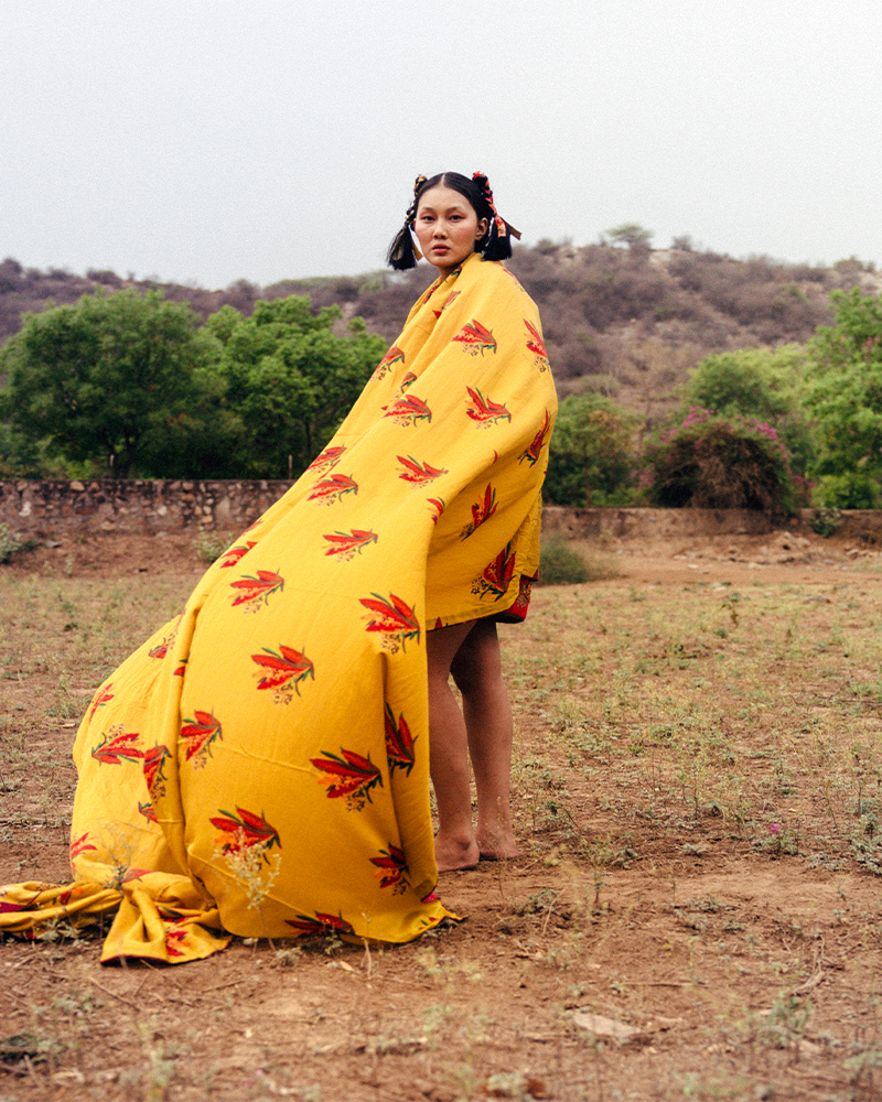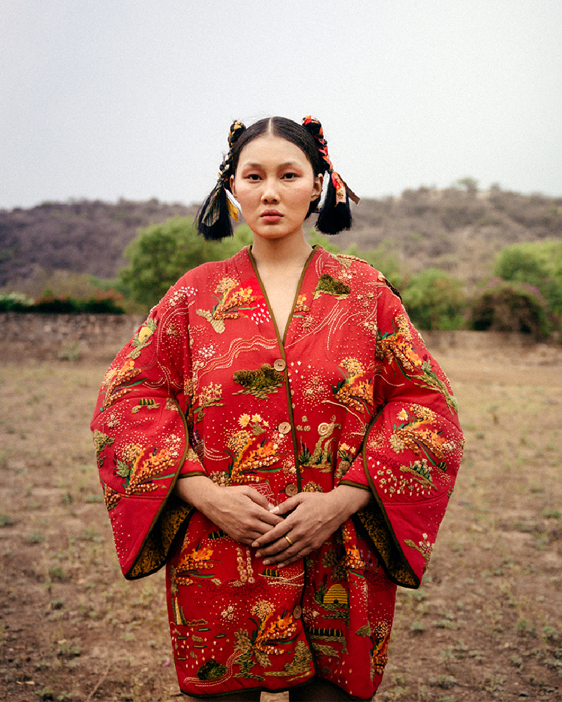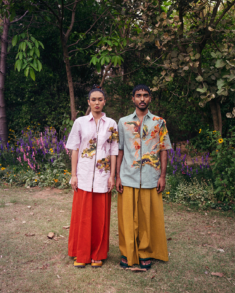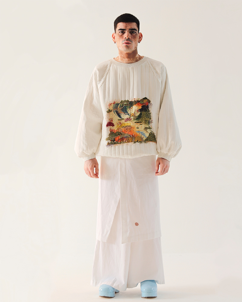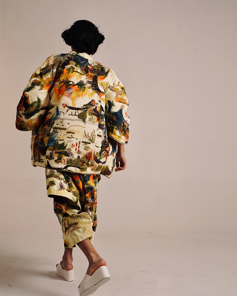 TIL is renowned for its bespoke pieces, featuring extraordinary prints and embroidery techniques, while embracing ‘katran’ to create depth in its garments through patchwork. This innovative use of fabric remnants reflects not only a cultural and creative choice but also a commitment to ethical production and cyclical fashion. As a sustainable, slow fashion brand, TIL highlights its dedication to minimizing fabric waste, embodying a philosophy of thoughtful, intentional design that respects both craft and environment.