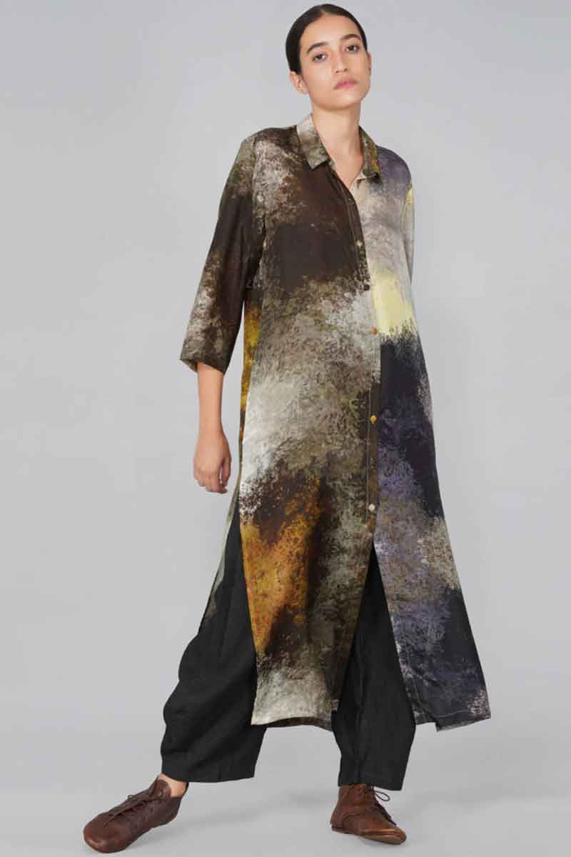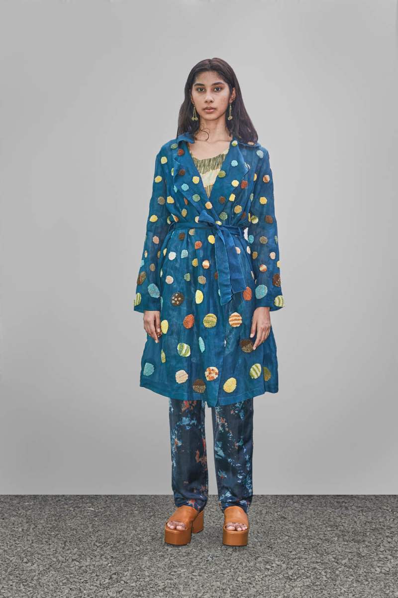 Established in 2016 by the designer Yadvi Agarwal, Yavi is a ready to wear label started with the idea of bringing Indianness together with western silhouettes, using natural fabrics. The label focuses on sustainability with concepts like up-cycling and reusing of waste fabrics. Since the country is rich with tradition crafts and techniques, we have used a number of techniques such as weaving, embroideries, kantha work, appliqué, tie-dye, shiboris, of different nature, digital prints, block prints, and natural dyes, to create unique fabrics which are blended to meet the requirements of the discerning western world women. The brand has also developed their signature one thread embroidery garment, as they focus on innovative textiles. The one thread embroidery piece has no fabric at all and the details reflect the work of master crafts men, as it takes a month of work to make one piece.