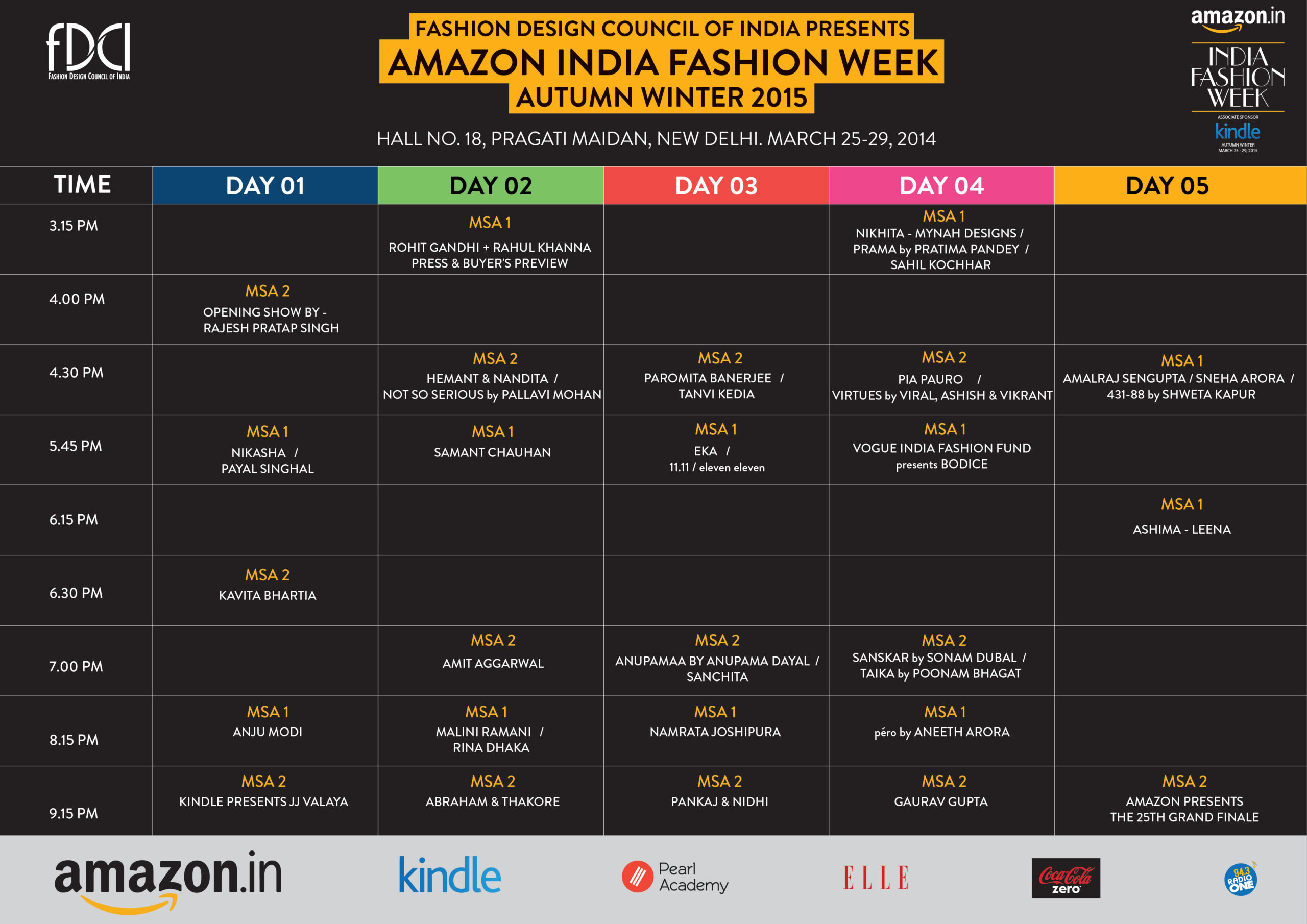 FDCI today announced the show schedule for the upcoming Amazon India Fashion Week, A/W 2015 along with a discerning list of participating designers. This latest edition will see over 100 established style gurus from all over the country.