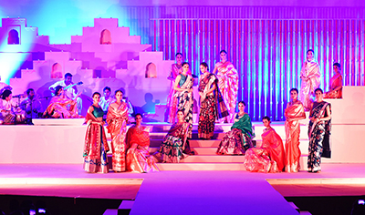 Models adorning the ramp at the set for Threads of Banaras fashion show