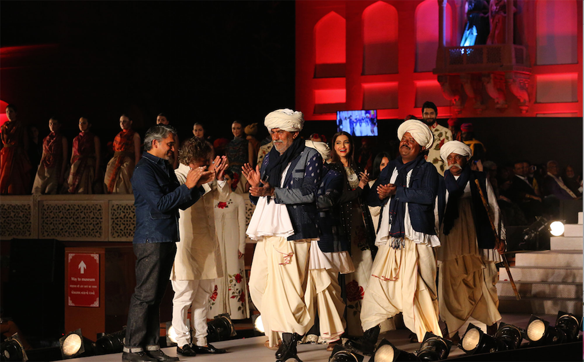 Anamika Khanna, Rohit Bal and Rajesh Pratap Singh with show stopper Sonam Kapoor wearing solo pieces from all 3 designers.