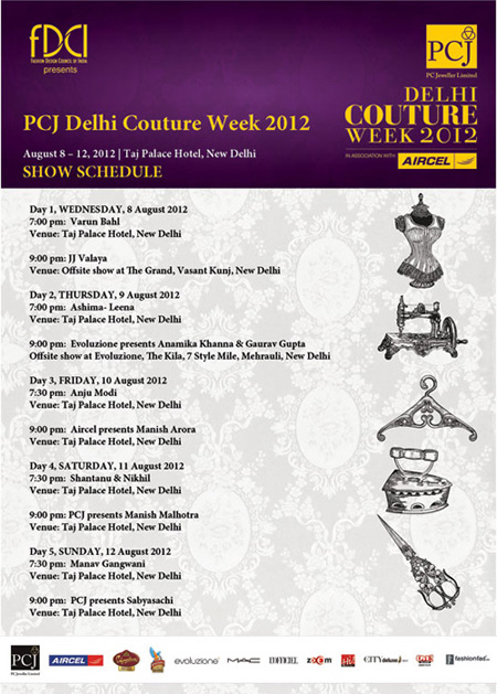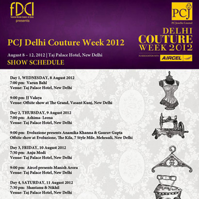 Show Schedule For Fdci Presents Pcj Delhi Couture 2012 In Association With Aircel