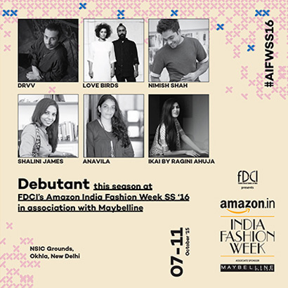 New Delhi, 28th Sep 2015: Fashion Design Council of India (FDCI) stands by its resolve to nurture fresh talent as six budding designers are set to present their collections at Amazon India Fashion Week Spring Summer 2016 in association with Maybelline NY. The five-day festival of fashion is scheduled from October 7-11 at the NSIC Grounds.