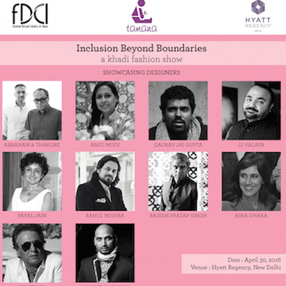 New Delhi, April 26, 2016: Fashion Design Council of India (FDCI), the apex body of fashion design in India, today announced an association with Tamana, a non-profit organisation, which works with the multiply challenged and autistic to host a heart-warming event titled “Inclusion Beyond Boundaries”, a Khadi show. The annual fashion extravaganza attempts inclusion of the differently-abled into the world of fashion. The exhibit will be held on April 30 at the Hyatt Regency Hotel, New Delhi, the hospitality partner for this event.