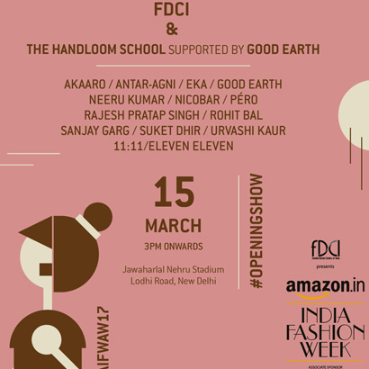 New Delhi, March 24, 2017: In keeping with the tradition of promoting crafts, the Fashion Design Council of India’s (FDCI) will dedicate day one of Amazon India Fashion Week Autumn-Winter’ 17, in association with Maybelline New York, to the indigenous textiles of the country. The opening show will be a befitting start to the four-day spectacle, where FDCI and The Handloom School – supported by Good Earth, will acknowledge the anonymous makers who create magic with thread. The event will be held from March 15-18 at the Jawaharlal Nehru Stadium, Lodhi Road, in the capital.