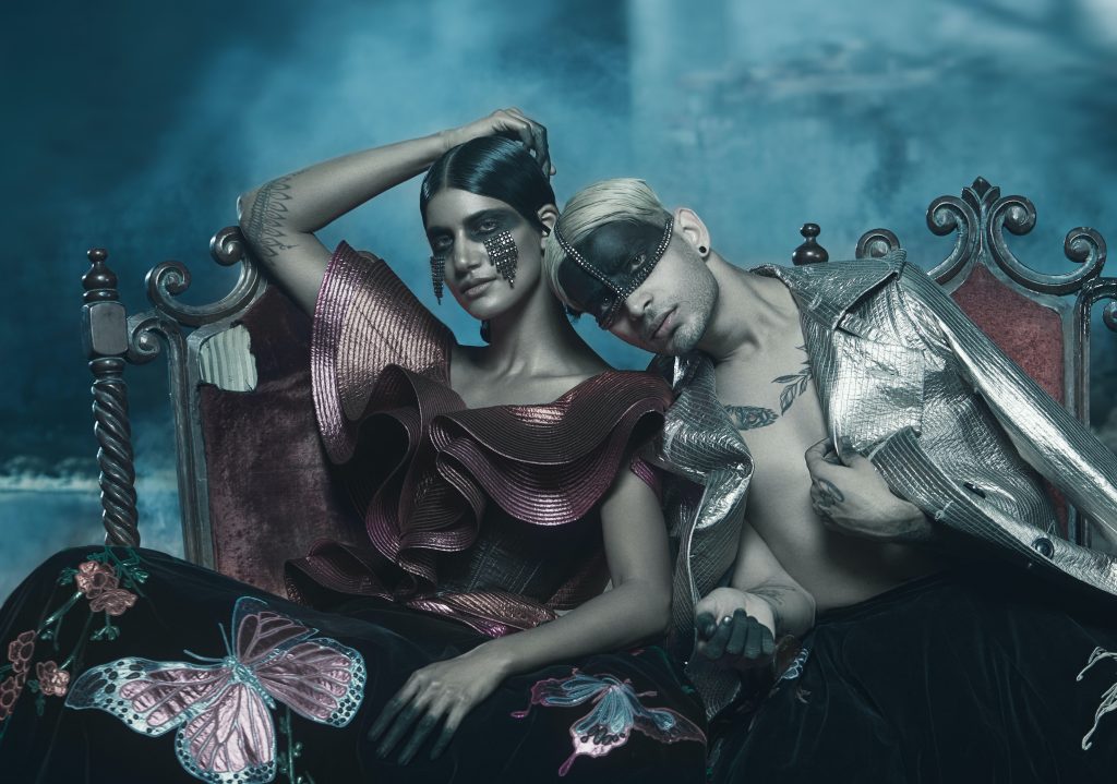 His double shaded jackets, with bold, embroidered motifs, sheer lilac shirts, including the adventurous rani pink sherwanis, elaborate headdresses, skirted men and angel wings made sure, gender lines were blurred. The fabric manipulations were interesting and so were the use of graphics, black seemed to be his colour of choice, as it gave him a wider playground to experiment with craft artistry.