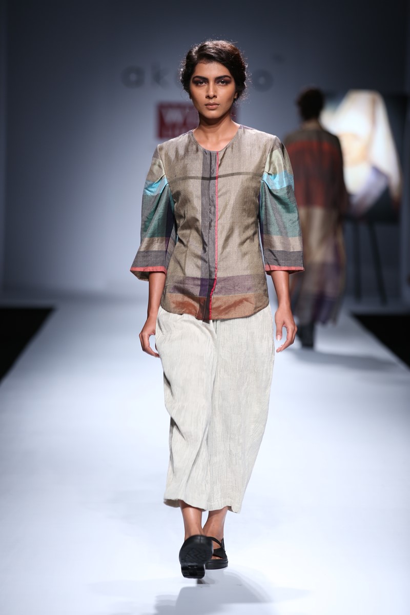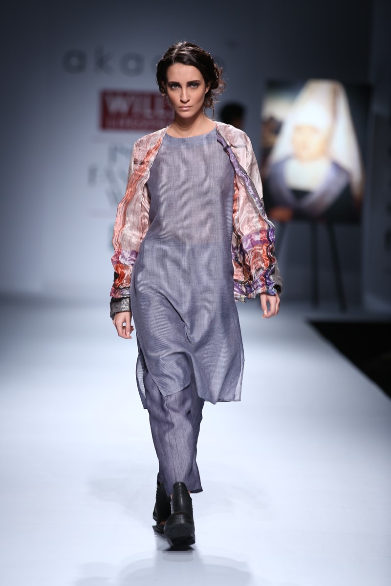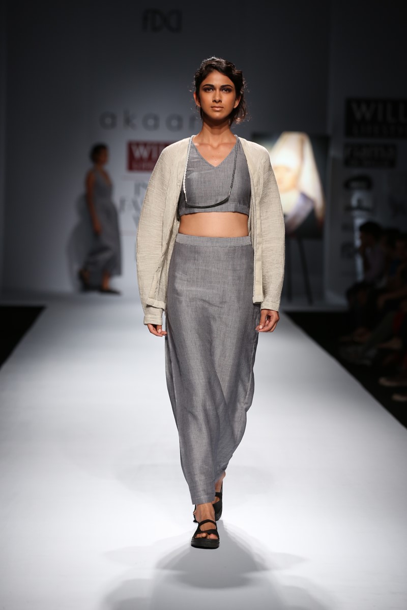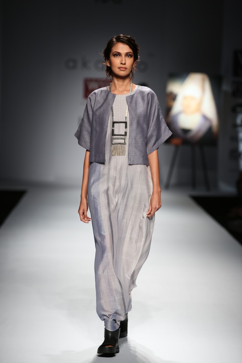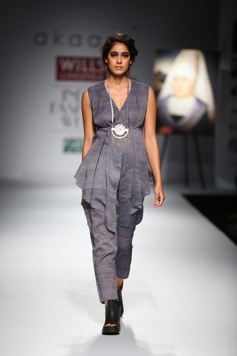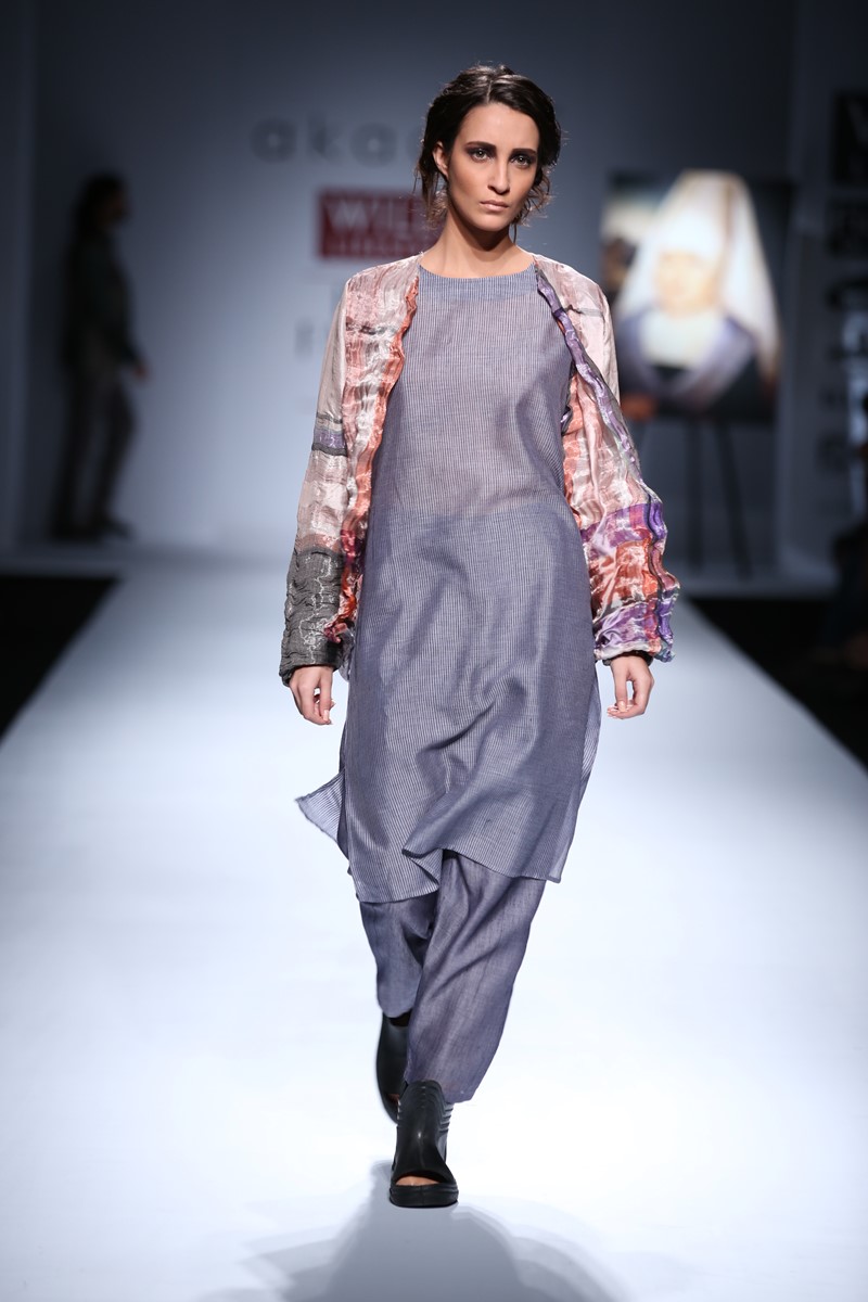 AKAARO has its origin in a Sanskrit world means the letter ” a “.nThe basic philosophy is the continuing focus on fabric as the starting point and the importance of design process/handlooms for the development of new technology to make clothing. With a clear intent of increasing the scope of hand-woven textiles internationally, at Akaaro all the fabrics are designed and developed using natural materials in-house at the studio space in Delhi. The brand thus strives to highlight the relationship between body and cloth.n nThe brand caters to India , Europe , Japan.n nThe Spring Summer 14 is called Moderate. The form and color have visual reference drawn from Nuns, Missionaries of Charity and Portrait of an Old Woman by Hans Memling. The collection comprises of easy separates in a mix of washed out and colorful blends of hand woven silks and cottons.n nBuyers Contact:nGaurav Jai GuptanMobile:9313220199nTel (with area code): 01140701360nE-mail ID: akaaro@gmail.com nWebsite: www.akaaro.comn nMedia Contact:nGaurav Jai GuptanMobile: 9313220199nTel (with area code) : 01140701360nE-mail ID: press@akaaro.comnWebsite: www.akaaro.com
