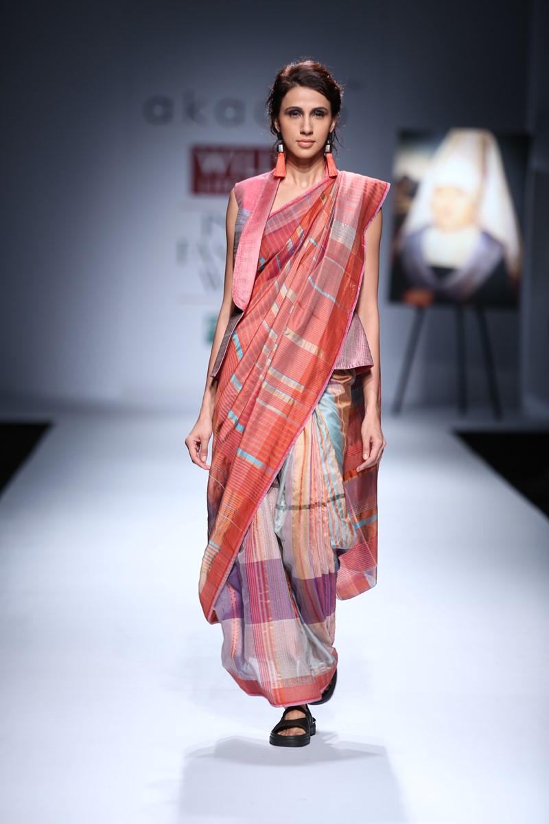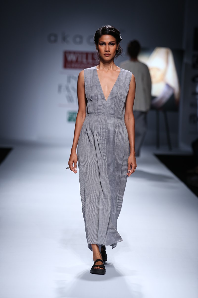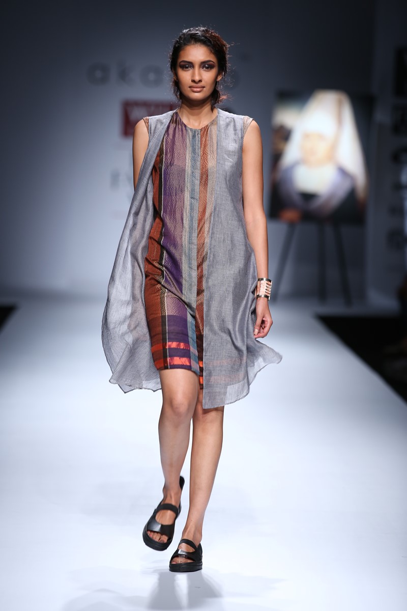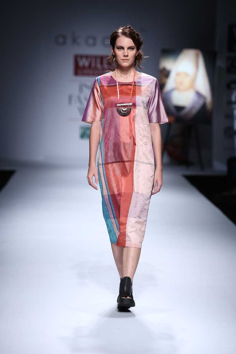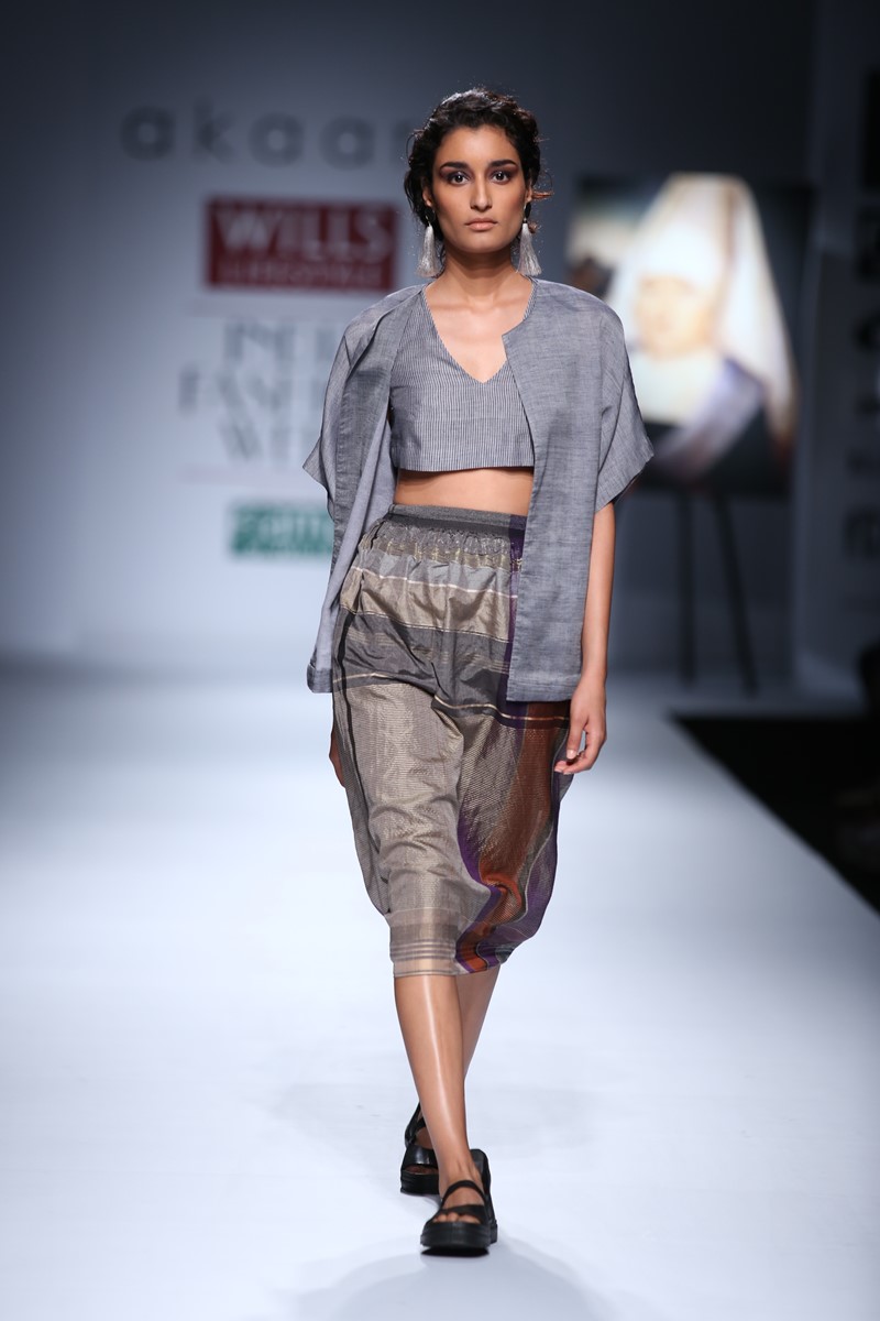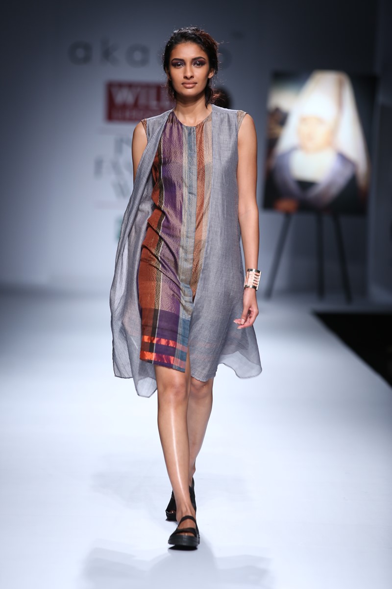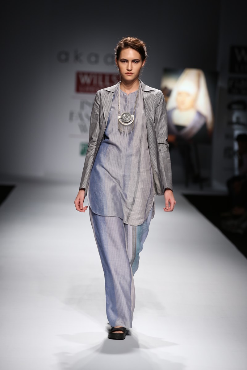 AKAARO has its origin in a Sanskrit world means the letter ” a “.nThe basic philosophy is the continuing focus on fabric as the starting point and the importance of design process/handlooms for the development of new technology to make clothing. With a clear intent of increasing the scope of hand-woven textiles internationally, at Akaaro all the fabrics are designed and developed using natural materials in-house at the studio space in Delhi. The brand thus strives to highlight the relationship between body and cloth.n nThe brand caters to India , Europe , Japan.n nThe Spring Summer 14 is called Moderate. The form and color have visual reference drawn from Nuns, Missionaries of Charity and Portrait of an Old Woman by Hans Memling. The collection comprises of easy separates in a mix of washed out and colorful blends of hand woven silks and cottons.n nBuyers Contact:nGaurav Jai GuptanMobile:9313220199nTel (with area code): 01140701360nE-mail ID: akaaro@gmail.com nWebsite: www.akaaro.comn nMedia Contact:nGaurav Jai GuptanMobile: 9313220199nTel (with area code) : 01140701360nE-mail ID: press@akaaro.comnWebsite: www.akaaro.com