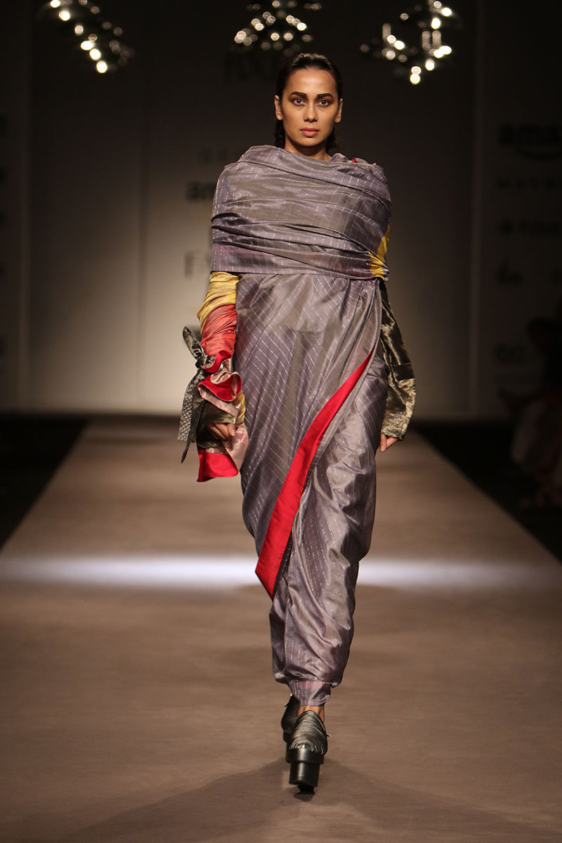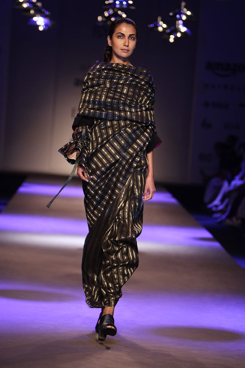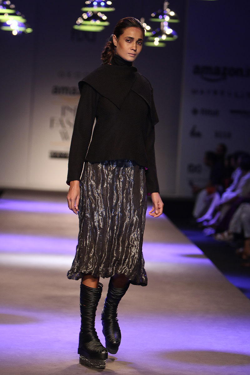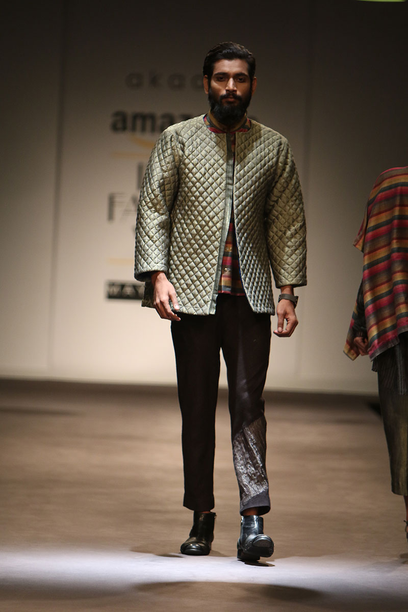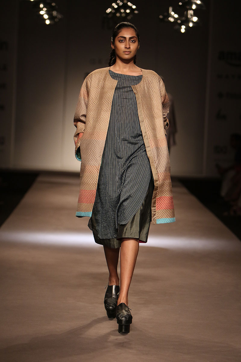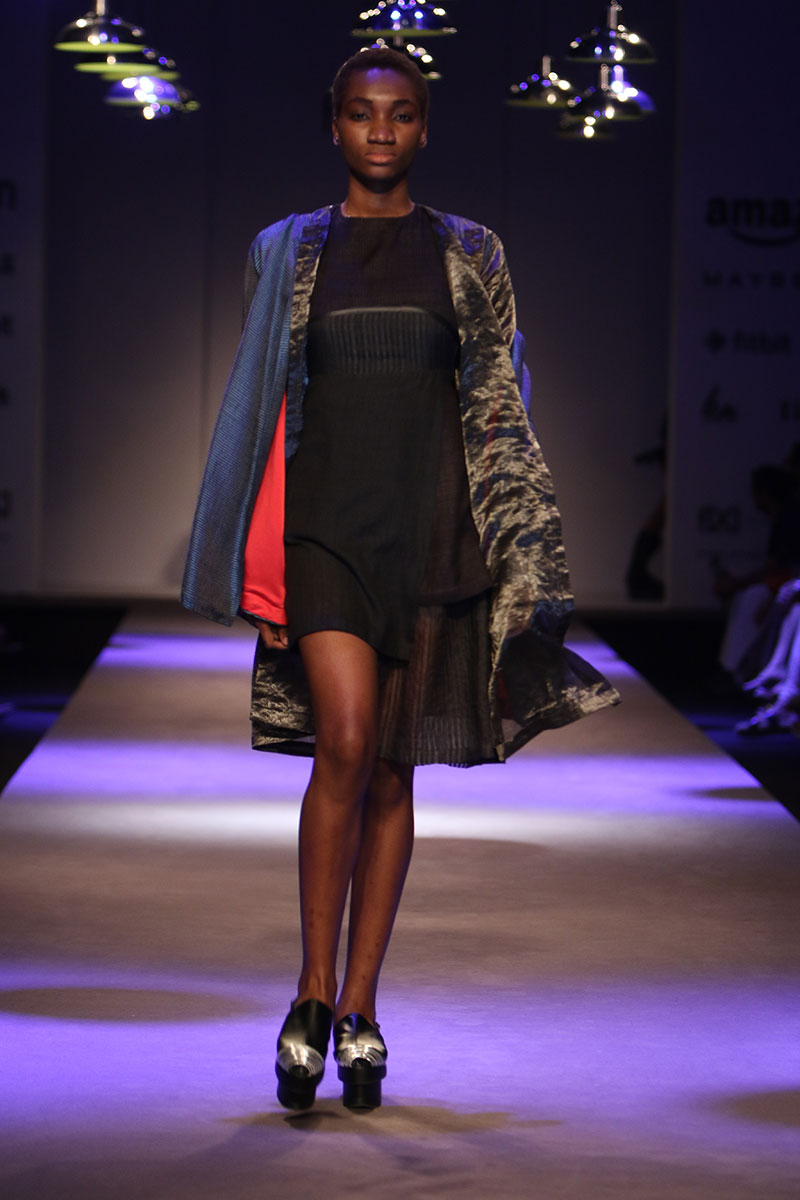 Autumn Winter 2016 uses american photgrapher Trey Ratcliffs works as reference point. Handwoven entirely at akaaro studios in Delhi the collection uses fine Merino Wools, Double cloth wool with stainlees steel fabrics, gauze merino with silks and banarasi engineered silks. The collection focuses on the idea of duality through colour, shapes and material.
