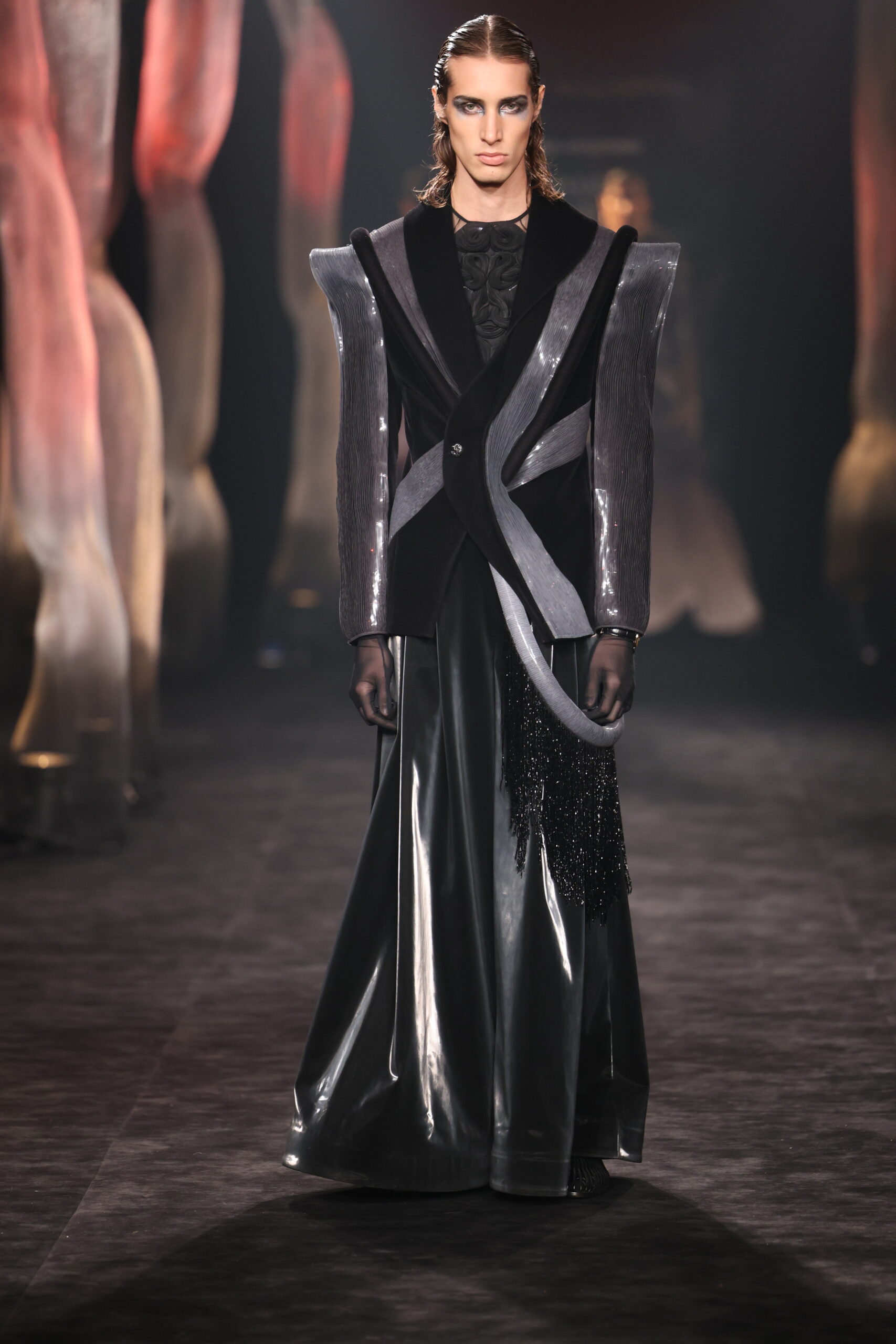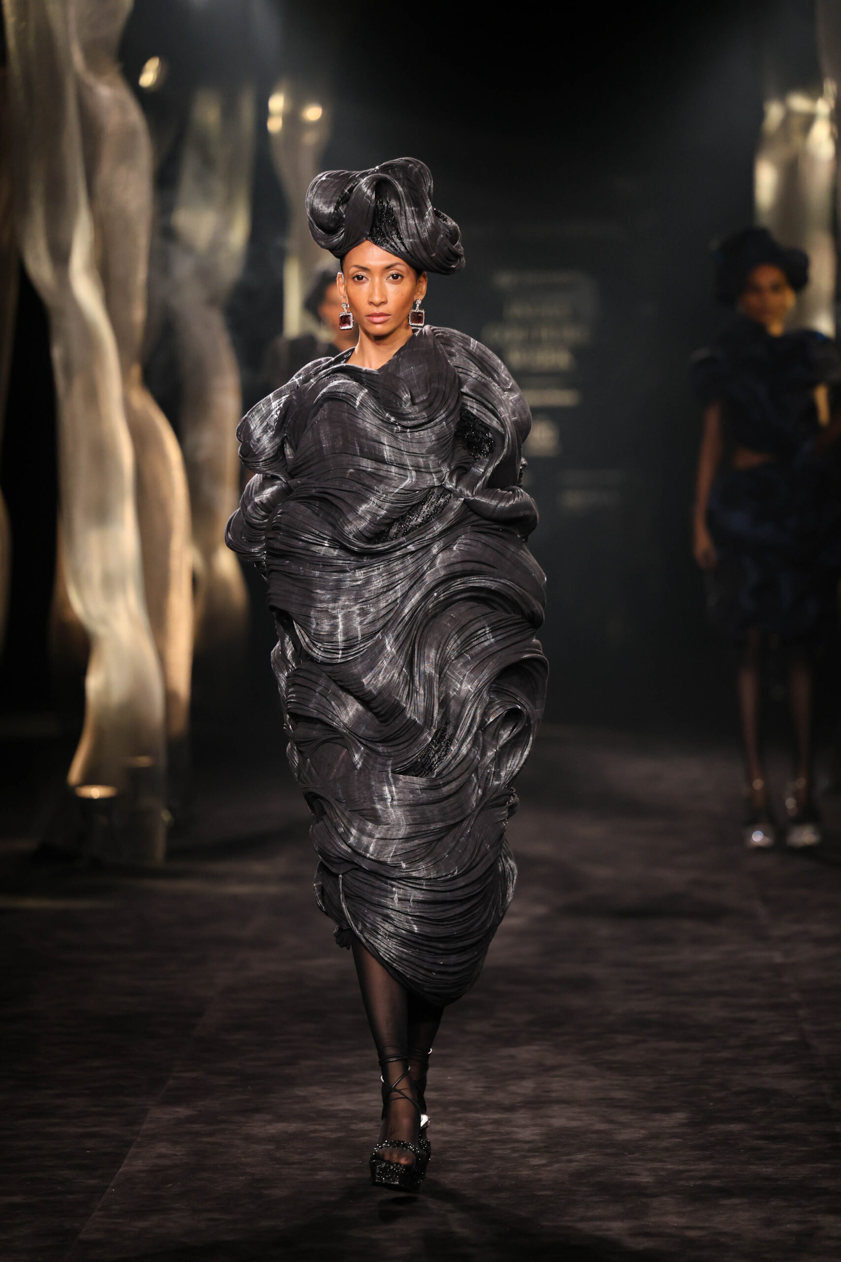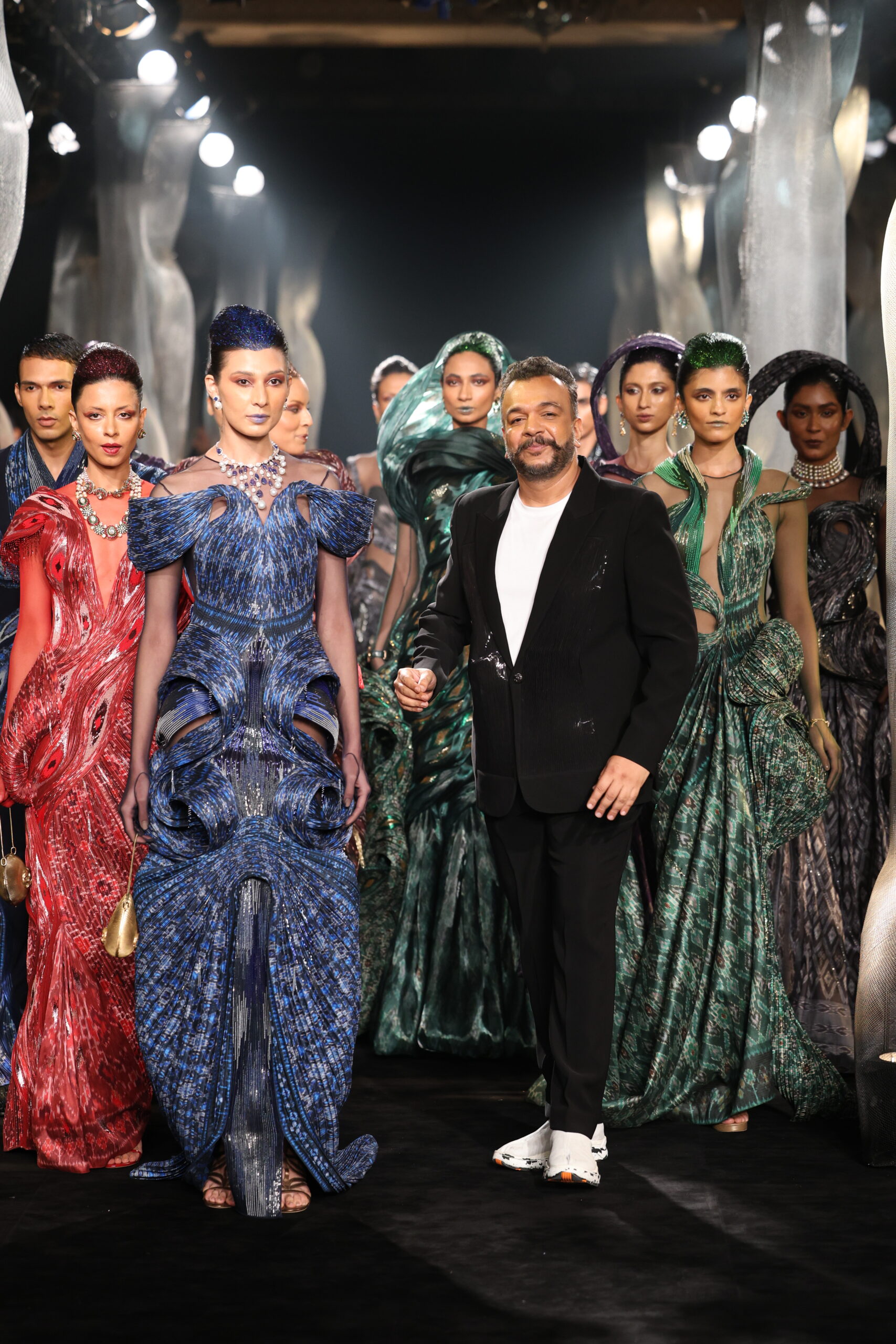 Patterns of Life celebrates the fact that when we are in the state of utmost speed, all we see is a dynamic blur of blacks, whites and silvers. From leotards that celebrate the wonders of human anatomy to chic gowns that are an ode to the old-school pleasures of dressing up to short dresses accentuated with slips and cutouts — it’s a celebration of life.