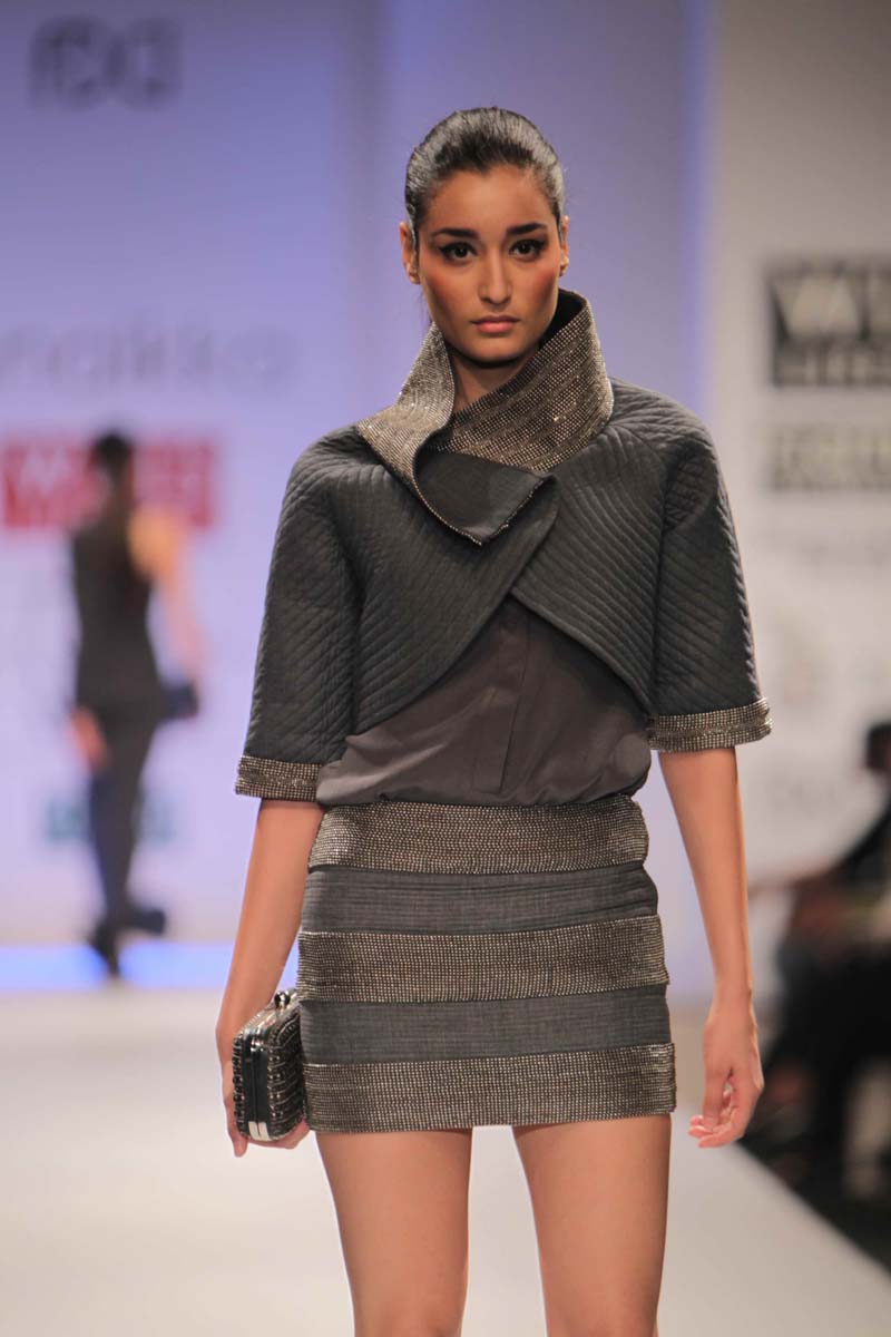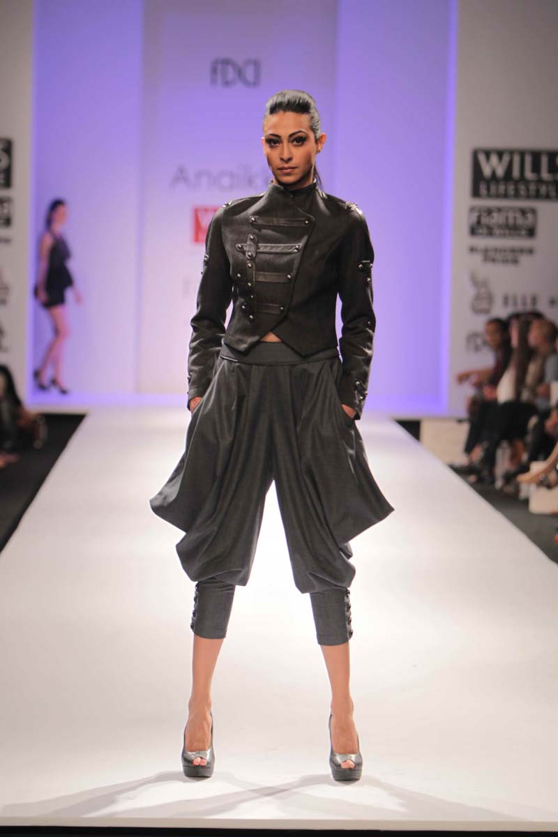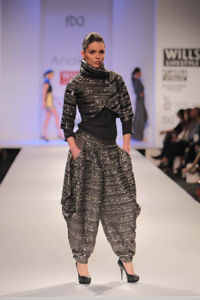 Anaikka embodies industrial surfaces with strong structuralnsilhouettes. This collection is an amalgamation of metal chicnwith industrial goth. The aim is to achieve equilibrium betweennarchitectural shapes and wearable chic sensibility. Our Mantranis to keep comfort right in sight when thinking of creativity. Thencolors that came to us were dark gothic colors like charcoal,nnavy, chocolate, deep forest green, blood red and just a splashnof electric blue to light up the night. Anaikka is all about makingnevery woman feel powerful and complete in her own skin.