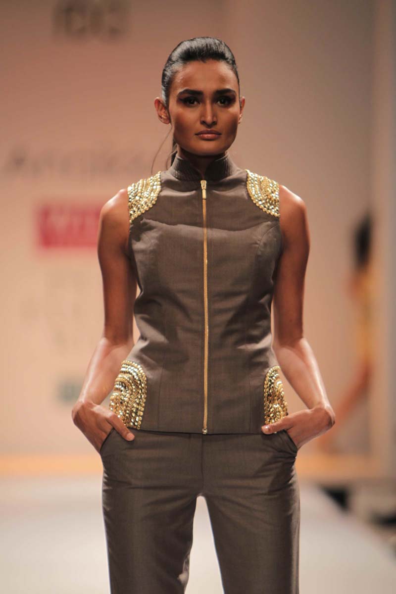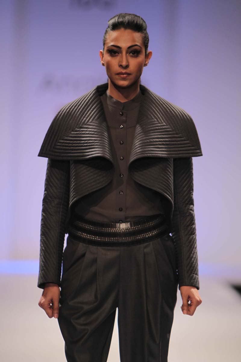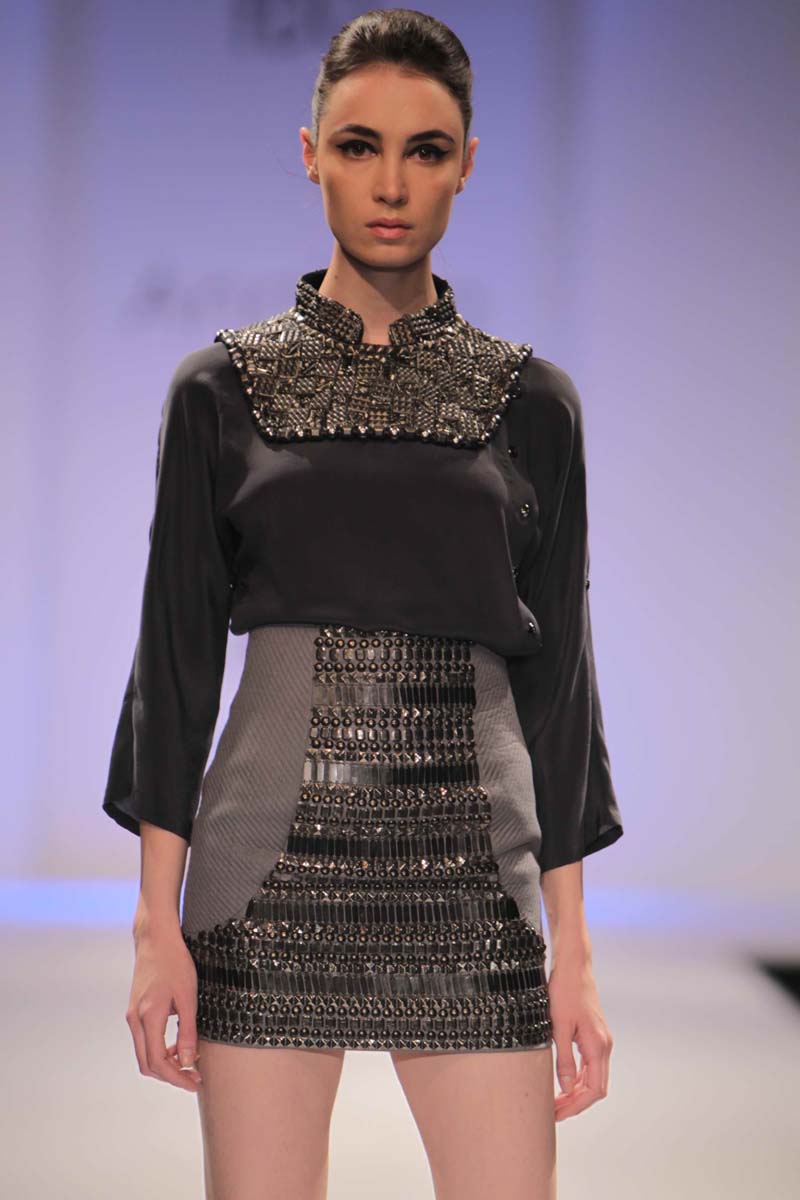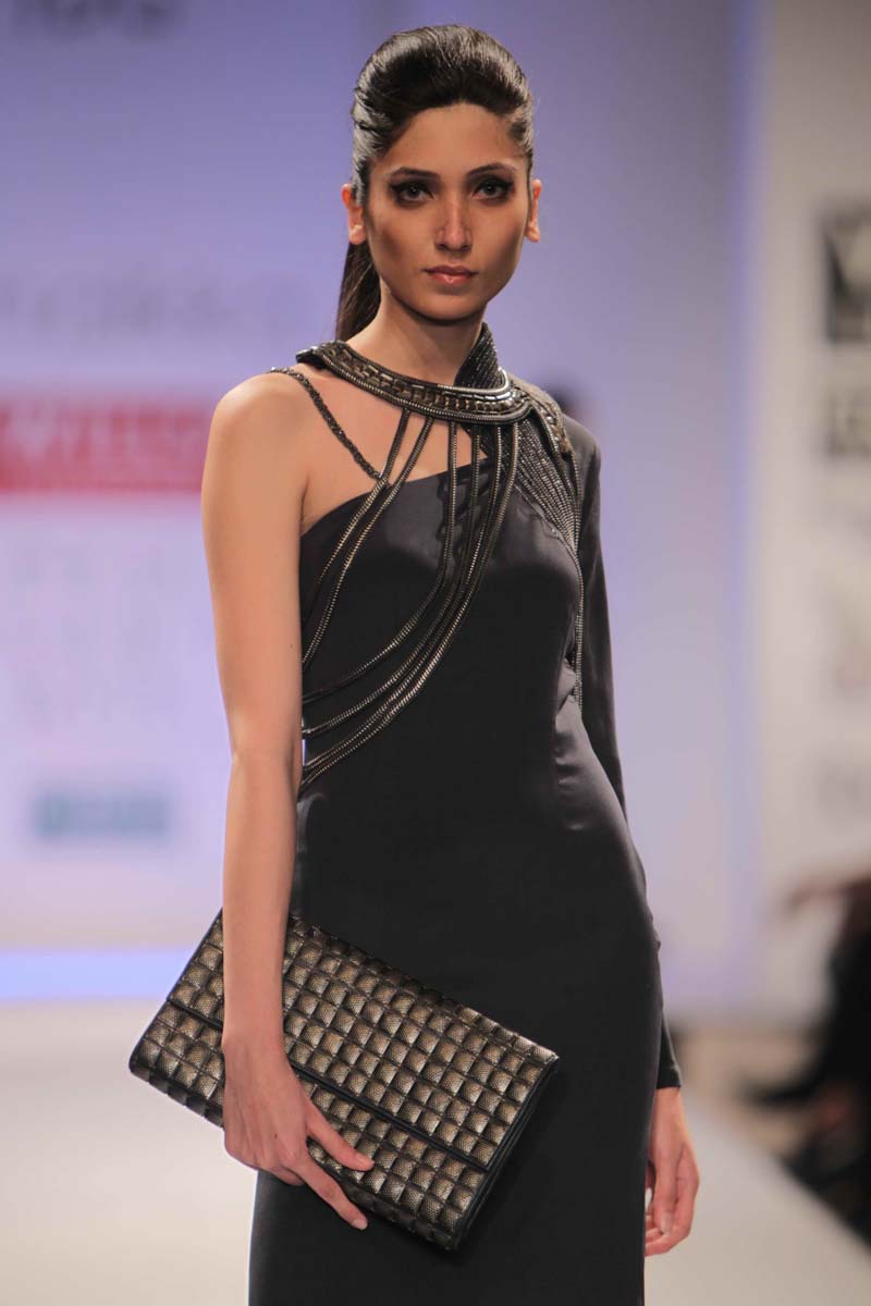 Anaikka embodies industrial surfaces with strong structuralnsilhouettes. This collection is an amalgamation of metal chicnwith industrial goth. The aim is to achieve equilibrium betweennarchitectural shapes and wearable chic sensibility. Our Mantranis to keep comfort right in sight when thinking of creativity. Thencolors that came to us were dark gothic colors like charcoal,nnavy, chocolate, deep forest green, blood red and just a splashnof electric blue to light up the night. Anaikka is all about makingnevery woman feel powerful and complete in her own skin.