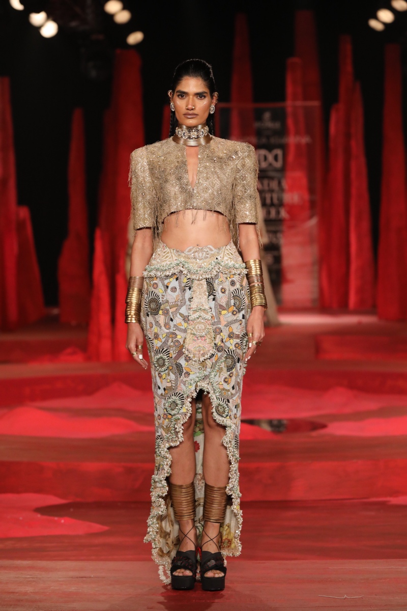 Anamika Khanna launched her namesake label in the early 90s, quickly garnering attention for her eclectic and non-traditional aesthetic. She was one of the first Indian designers invited to showcase at Paris Fashion Week and has won international recognition for her designs, fusing Indian aesthetics with modern cuts and styling.