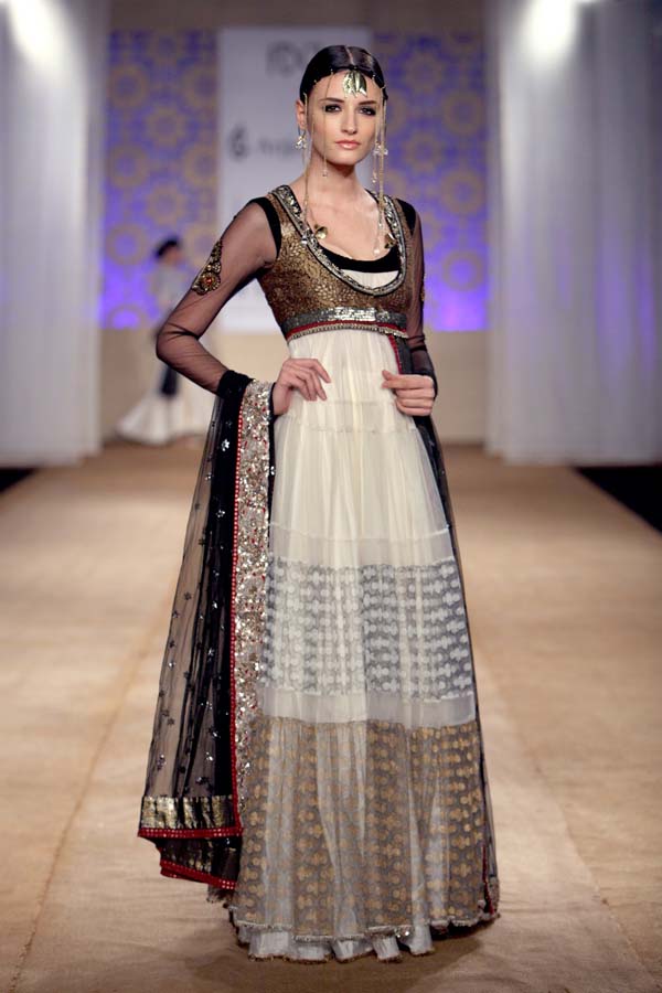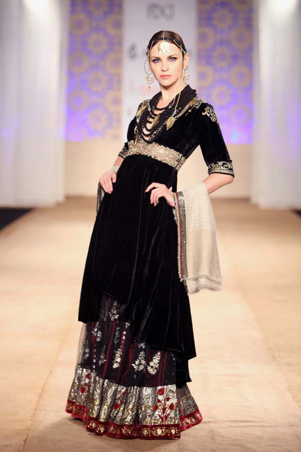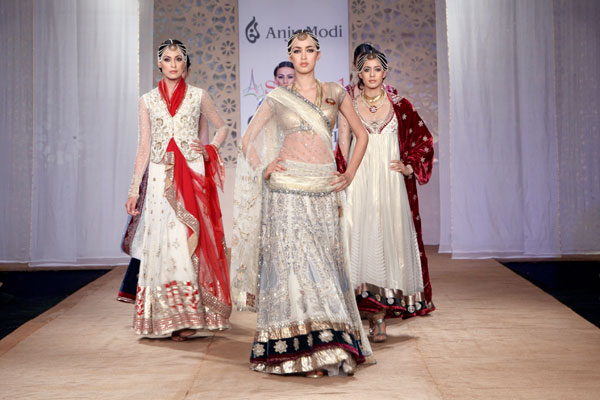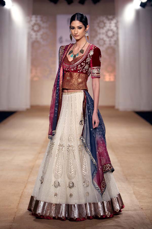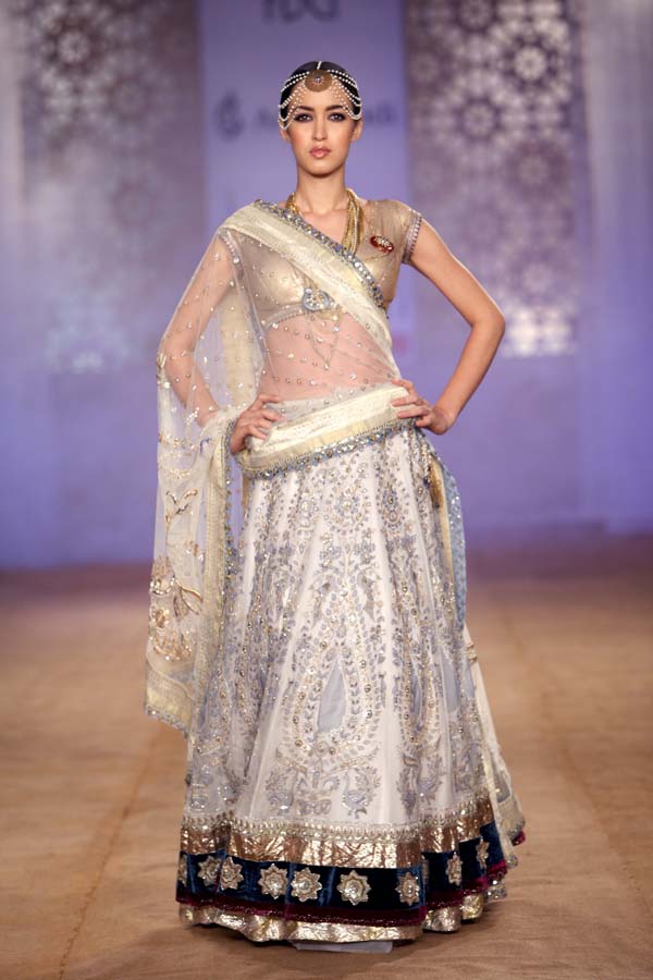 A revered couturier, Anju Modi has been a strong force in the vehement increase of potential, awareness and growth of fashion in India.nSynonymous with luxury, beauty and brilliance, her designs have mesmerized innumerous ardent followers of fashion across the globe.nHer ever-evolving designs are the result of her tireless work with master artisans from varied parts of the country, revitalizing and revisiting forgotten crafts and lost legacies. She strives constantly for their revival and relevance. nThis season, she presents her collection Maya.nBejeweled, beautified and bespoke, Maya was conjured by the Gods, the goddess of wealth herself. She was said to possess the combined material power of all the Gods and Goddesses. She was the ultimate seduction.nDrawing from this mystical epoch, the collection is incensed with craft, style and grandeur, all of it spectacularly captured in hues of Blue, Ivory and Maroon. nImpossible angrakhas, opulent saris and exaggerated lehengas in magnificent porous fabrics have been passionately illustrated, creating a magical vision, of the ultimate illusion.n nBuyers ContactnAnirudh BirlanM: +91 9910203600nT: +91 11 39112110nE: anjuman.modi@gmail.comn nPress CONTACTnMohnish MalhotranM: +91 9891228951nT: +91 11 41080041