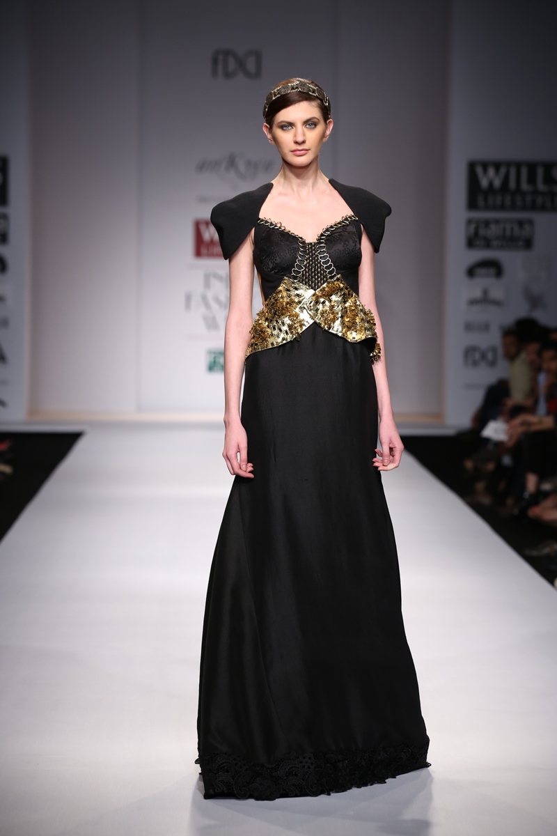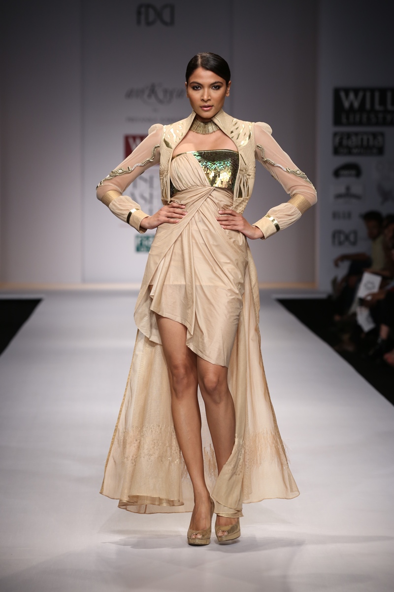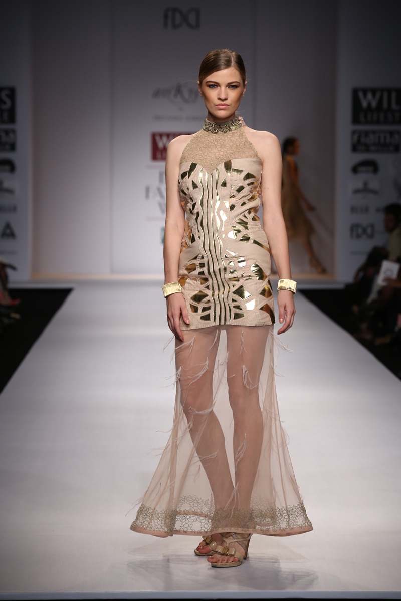 Label reflects classic silhouettes that are immaculately styled to interpret aesthetics of the past in an elegantly modern perspective, attracting customers with a definite sense of individualitynAnkyra meaning, “Anchor” targets customers with style sense and is known for providing quality, style and elegance in bespoke design.nThe main markets are U.A.E, USA, Hongkong, Kuwait and United Kingdom while the domestic are Delhi, Mumbai, Kolkata, Nagpur, Raipur.n nThis SS14 collection The Aurelian Bequest meaning the golden heritage, takes its inspiration from the art, craft, and the architecture of Morocco. The fabrics, colors, and even the dexterity of the pieces speak of the stories and the heritage. Modern yet traditional, simple yet ambrosial, the collection features gowns, dresses, kaftans, sarees and separates. Creative textures and embroideries adorn the fabrics and the attentively styled details bring out the dexterity of the silhouettes. The Aurelian prints, the embroideries, the laser cuts, and the workmanship, enliven the basics. The styles ooze of modernity, feminity, and glamour, i.e the traditional outlook of the new robust & resplendent women.n nBuyers Contact:nPriyanka KakkarnMobile: +91 9810471498nTel (with Area Code): +91 11 45548965 nEmail: priyanka@priyankakakkar.comnWebsite: www.ankyrabypriyanka.comn nMedia Contact:nApala SinghnMobile: +91 9810471498nTel: +91 11 45548965nEmail ID: info@priyankakakkar.comnWebsite: www.ankyrabypriyanka.com