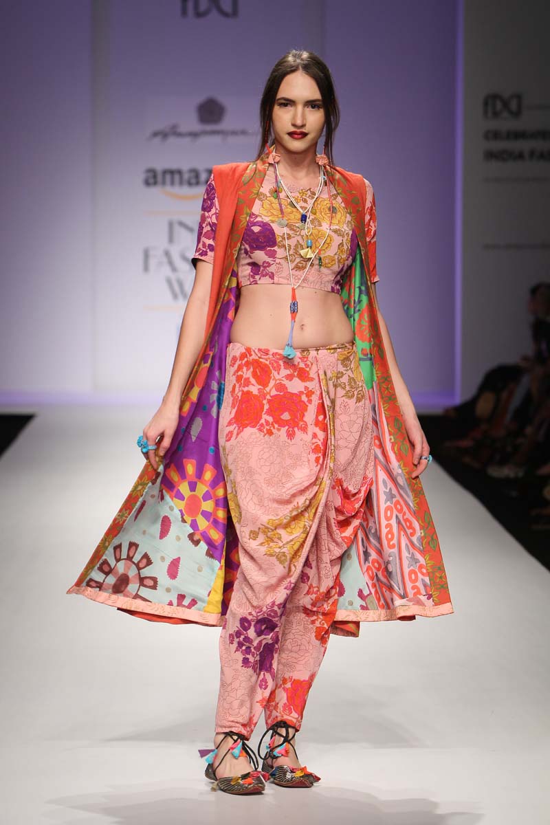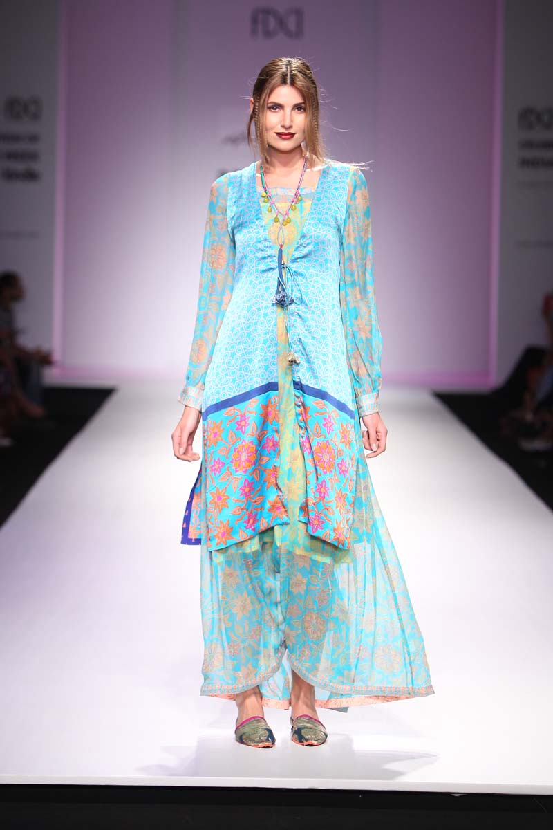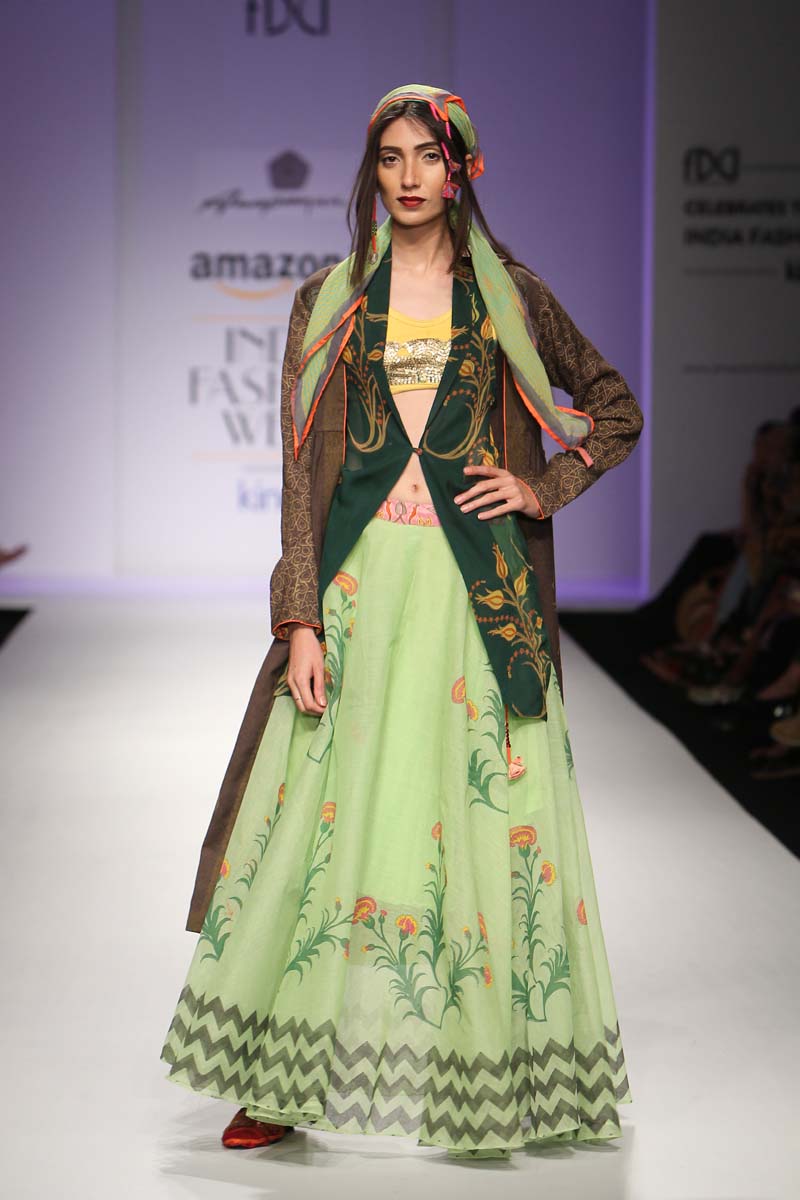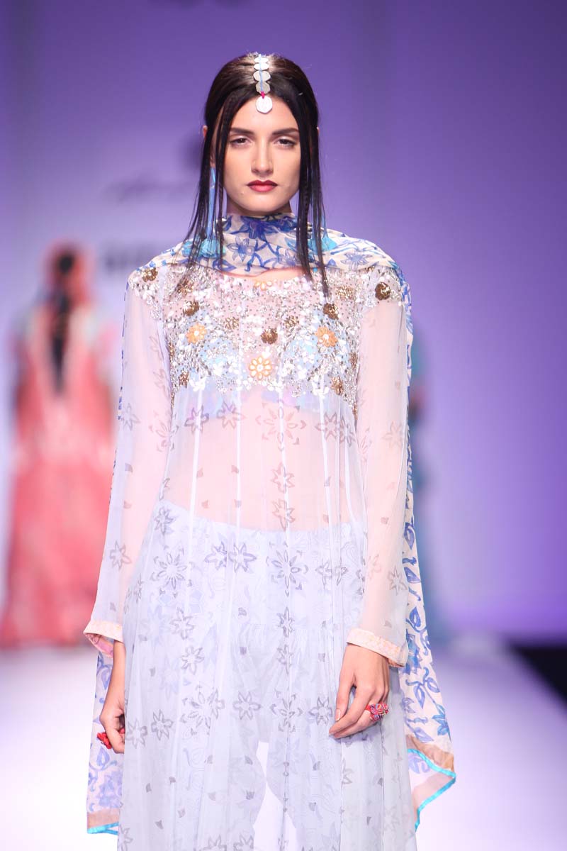 “The melting pot of Anupamaas eclectic inspirations creates an inspiring and cultural collection of fetichistic fashion, attaching us to the roots of India and at the same time making us international urban nomads. Clothes for our own century.” Lidewij Edelkoort (worlds leading trend forecaster)n nAnupamaa has been experimenting and setting new milestones in her unique printing and needle work techniques. The print stories are unique and the philosophy is organic. The Anupamaa brand is regularly seen in the 150 stores of the iconic Anthropologie. The buyers claim to be in love with the eclectic, artistic look and the unusual use of colour..The legendary Australian fashion retailer, Belinda Seper has been quoted as saying “with Anupamaa, you get the soul of India.”n nThe brand is available in New Delhi, Mumbai, London, New York, Paris, Milan Tokyo, Kuwait, Dubai, Singapore, Ibiza, The Bahamas, Puerto Rico and many other countries.n nThe Autumn-Winter15 collection name is called Jamali Kamali. “An ode to the city I live in and an attempt to embrace all its living history.” The collection will be 2 pronged. Jamali will be Mughal inspired, purist, wedding ensembles. Kamali will use similar dresses say just the divided skirt or a Persian trouser and wear it in a modern, casual, ‘ anywhere in the world’ manner.n n