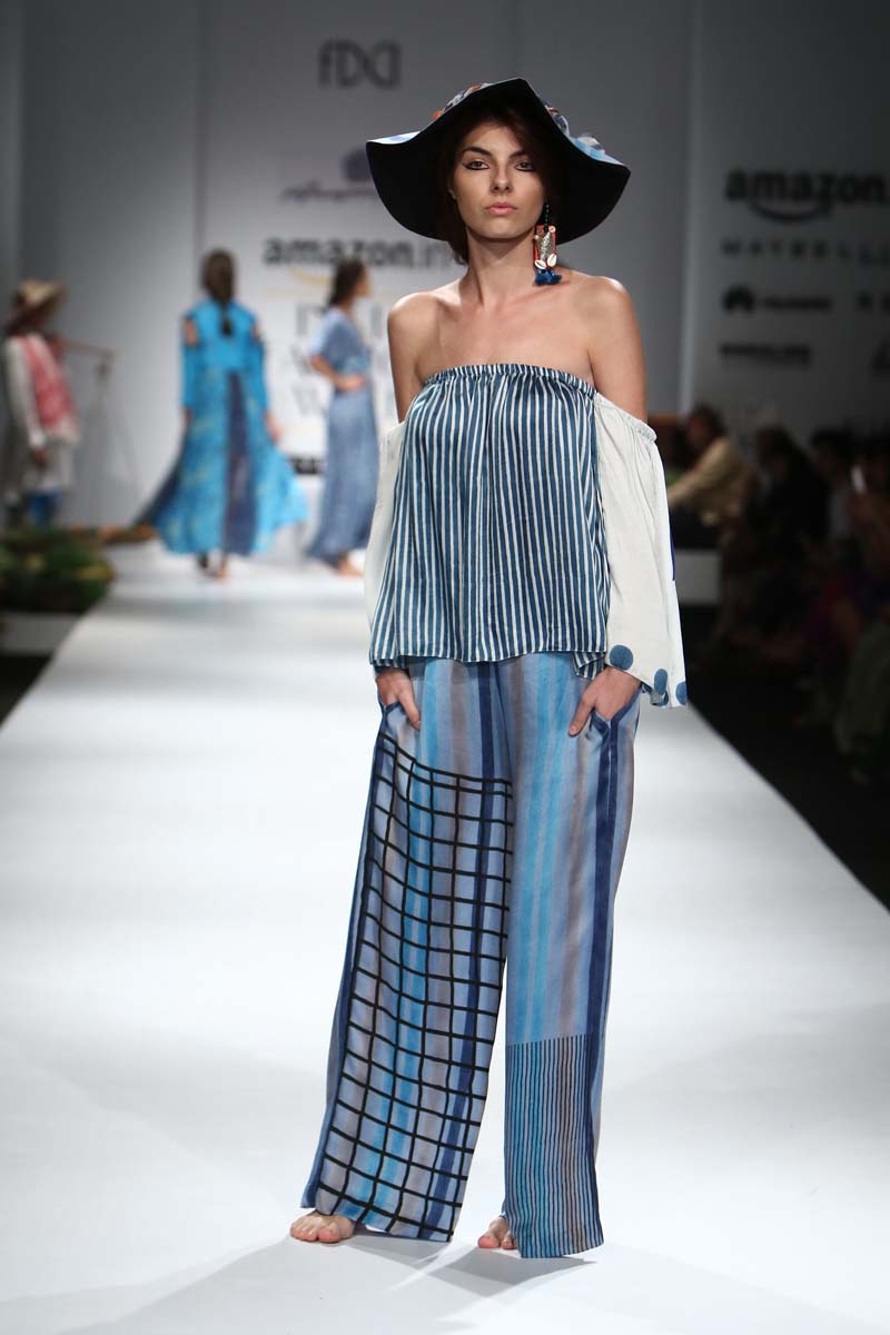The Spring-Summer 17 collection by Anuapamaa is called “The Pirates Of Calcutta “. Set in 15th, 16th century Calcutta. An ode to its maritime history. The collection highlights blue and white ceramic, an important item of trade in all ships of that vintage
