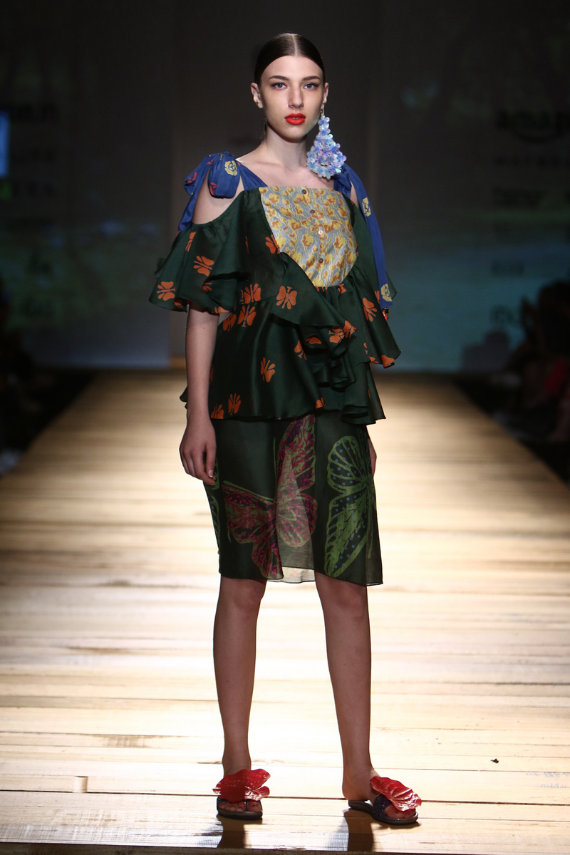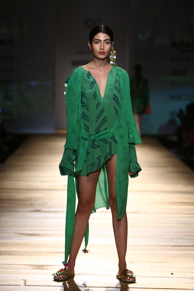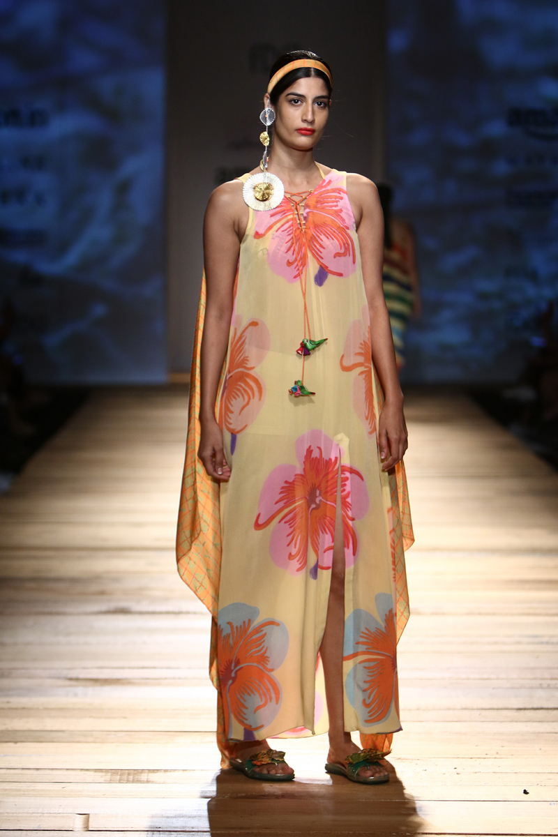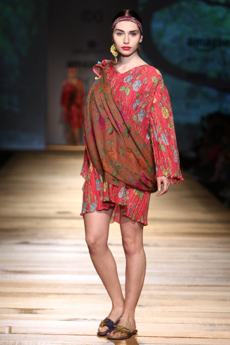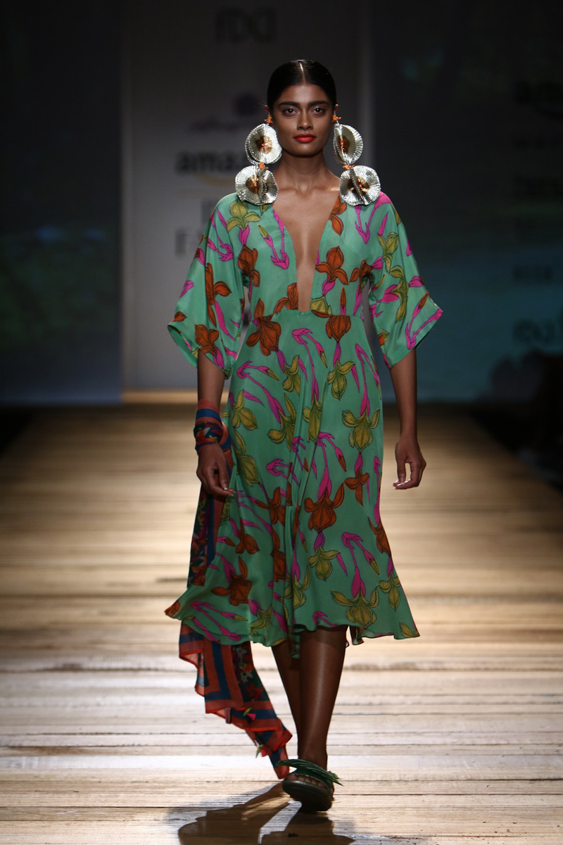 This collection is set against a forest. The sacred forest of Mangar village. We have romanced intense florals. We have also tried to incorporate learning from the life of a forest dweller often the wandering nomad. Light , wearable in multiple ways , several uses , easy to travel with feminine enough to win hearts , strong enough to pass on to the next generation