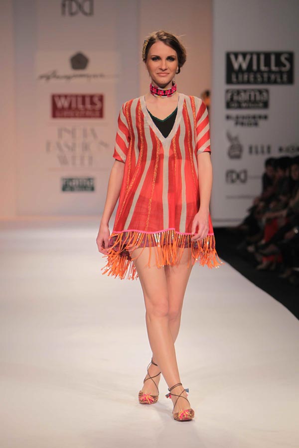 Awarded the Designer of the Year by Cosmopolitan FunnFearless Female Awards 2011, voted as outstanding by Elle USnwhile Vogue UK declared her autumn winter 2008 collection asn‘easily the prettiest’.nLaunched in 2004 Anupamaa has received a great response innParis, and has showcased at the prestigious Rosemount AustralianFashion Week. Anupamaa supplies to stores across US, Europe,nMiddle East, South East and Australia.nAnupama has been experimenting and setting new milestones innher unique printing and needle work techniques. The print storiesnare often eclectic and the philosophy is organic.nAnupamaa‘s Kinnari collection can now be seen on the racks ofniconic ‘Anthropologie’. In India she retails from Bombay Electric,nOgaaan, Aza, Chamomile, Ensemble, Taj, Khazana, etc.